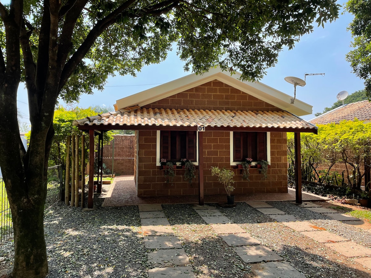 UM TEMPO a DOIS! RECONECTE COM SEU PAR! É uma mistura de Chalé Suite, charmoso, aconchegante, romântico!! BEM NO CANTO DA MATA!! Passaros, saguis(macaquinho), poderão ser vistos da ampla janela de vidro. A BANHEIRA FICA NO QUARTO com vista para a mata!! MUITO CONFORTO, TRANQULIDADE, feito especialmente para seu MOMENTO A DOIS!! Permita-se vivenciar essa experiência com seu PAR! Poderá curtir o deck, espreguiçar na Chase, curtir o balanço, fazer um churrasco e apreciar a natureza!