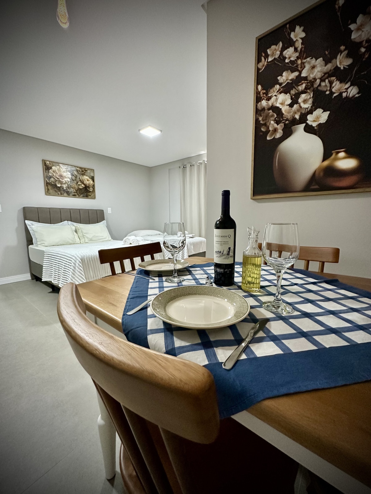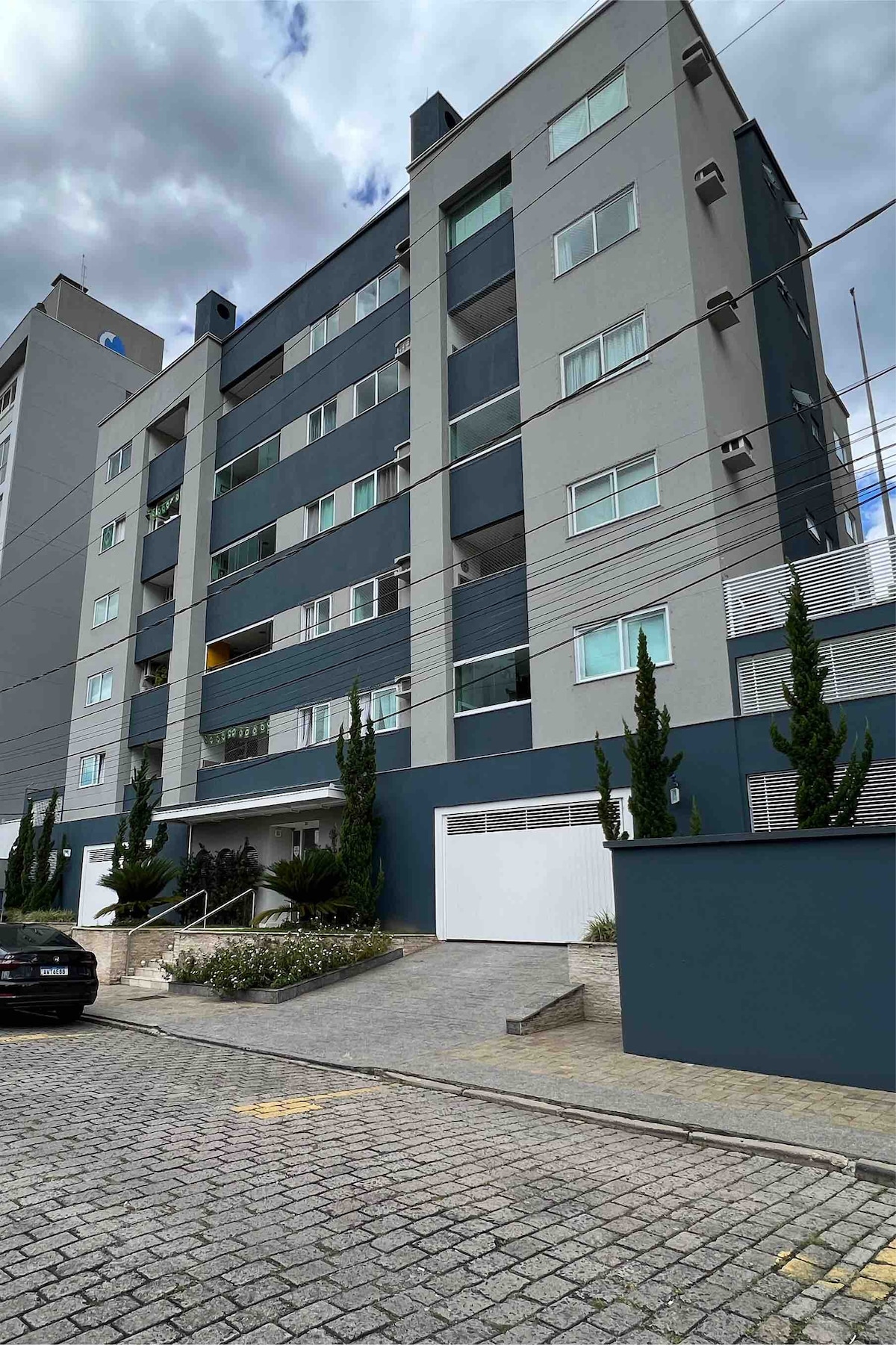 Moderno apartamento studio, localizado à 300mt do parque Vila Germânica - local de eventos como a Oktoberfest. Rodeado por restaurantes, bares, fica próximo ao Parque Ramiro Ruediger, principal área de lazer, caminhadas e exercício de Blumenau. Tudo para o seu conforto: smart Tv 43", ar-condicionado split, wifi fibra 240mb, cozinha completa com geladeira Brastemp, microondas, fogão, cafeteira, forninho, lavação com lava e seca, armário de roupas, e é claro uma cama queen convidativa!