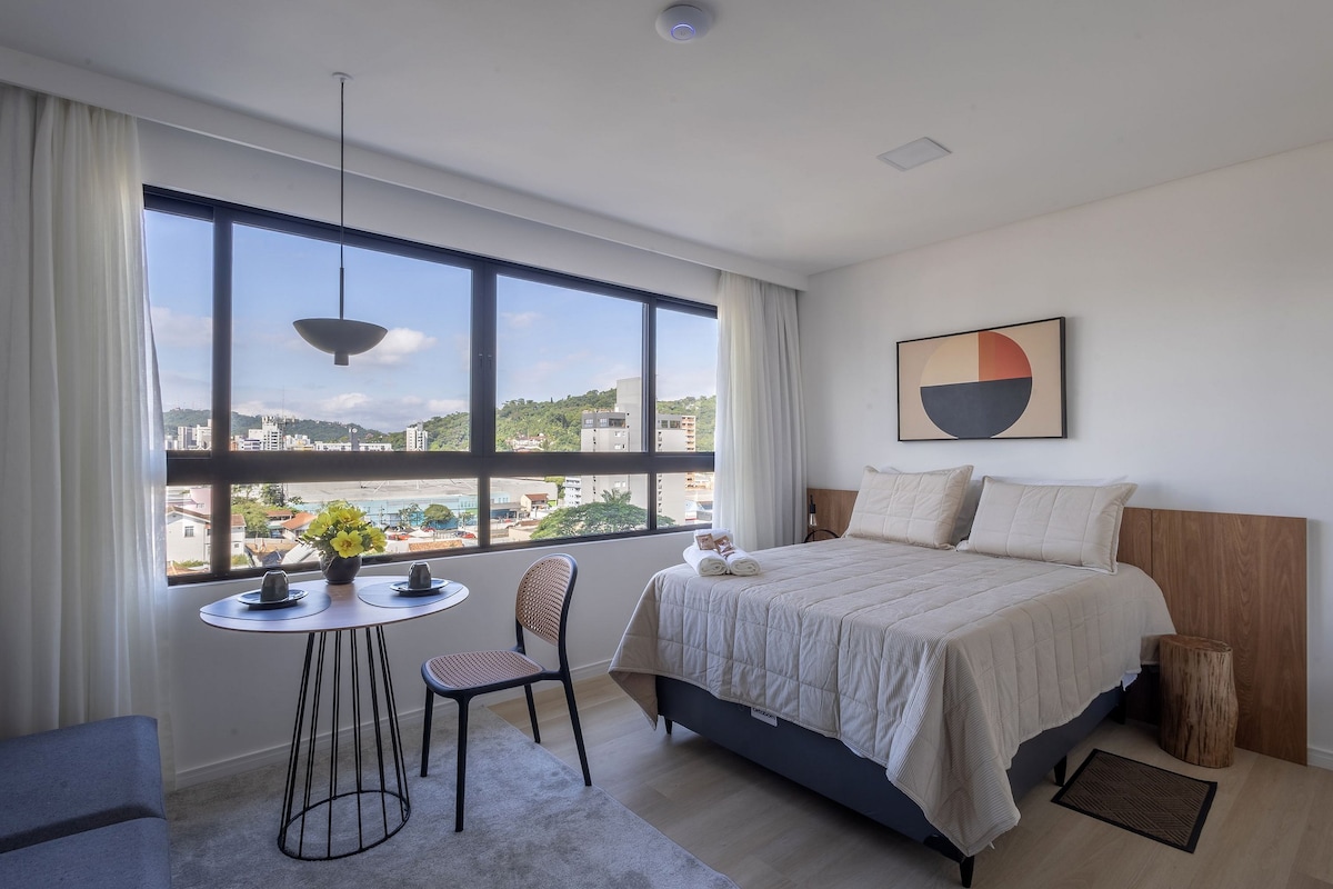 O apto fica localizado em uma região privilegiada da cidade.Próximo a FURB, mercado,bares/restaurantes, farmácia, lavanderia, ao parque da cidade e da nossa maravilhosa festa de outubro(900mt dos pavilhões da Oktoberfest).É totalmente mobiliado, com louças, microondas, cafeteira, ar condicionado. E decorado com muito bom gosto! Temos hoje uma TV 42'/som instalados na sala. Convido você a desfrutar de bons momentos aqui! Sinta-se em casa,na nossa casa! Teremos prazer em recebe-los!!