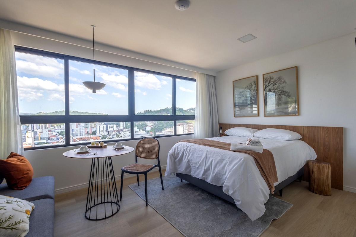 Apartamento aconchegante, limpo bem organizado, com vista para o Parque Vila Germânica onde acontece a Oktoberfest, o festival Brasileiro da Cerveja, Sommerfest, Vila de Páscoa, a Magia de Natal. permanece aberta todos os dias onde é possível encontrar bares e restaurantes onde o foco é a comida alemã.