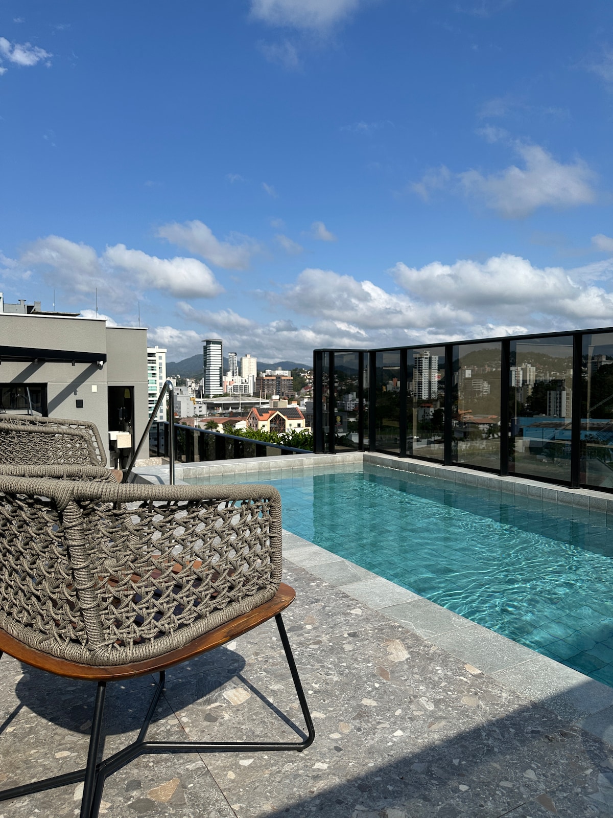 "Loft moderno e aconchegante, com vista panorâmica, ao lado da FURB. Ótima localização, perto do centro, Vila Germânica, mercado, farmácia e via gastronômica. Desfrute de piscina, coworking, academia, terraço, sala de jogos, bar e churrasqueira. Perfeito para uma estadia confortável e prática. "Curta uma experiência elegante neste lugar bem localizado. Loft novo, com decoração nova e aconchegante, feita com muito carinho para lhe receber!!