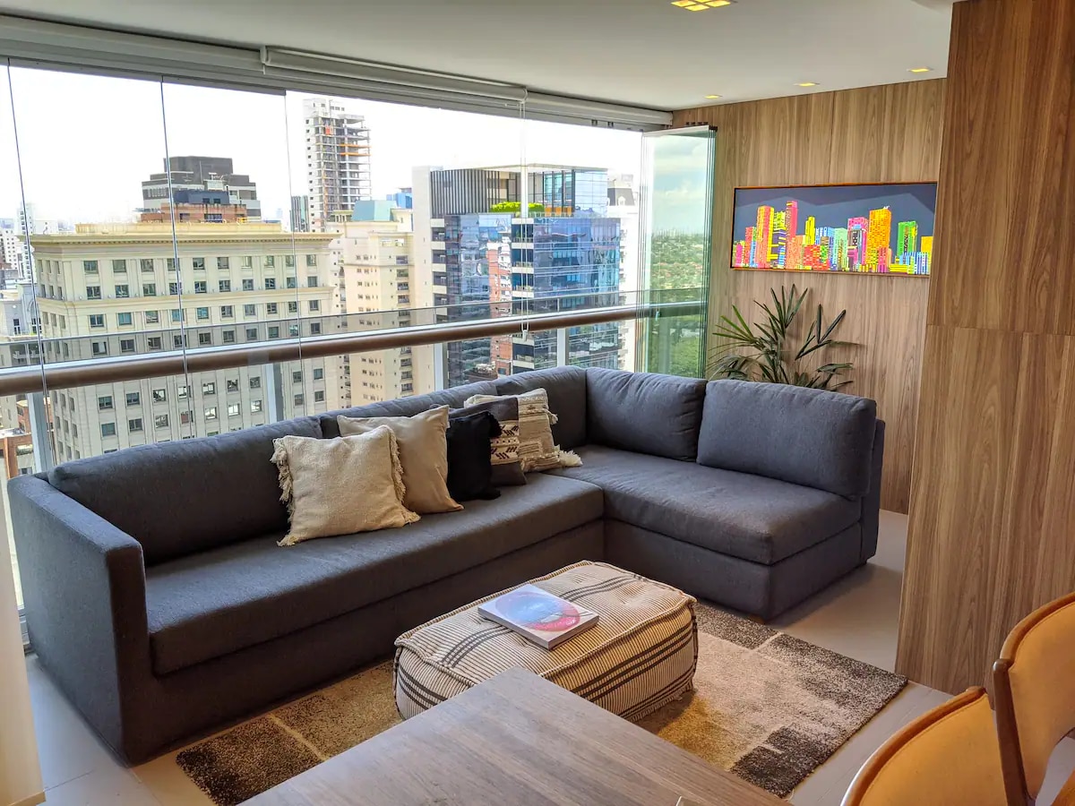 Welcome and make yourselves at home. The apartment is brand new, designed especially for you and has impeccable decor, very practical for everyday life. The view is spectacular! The apartment is on the 28th floor. We are in an excellent location in São Paulo, in the Pinheiros neighborhood, with restaurants, supermarkets and bakeries very close by. It's 40m2 (430 sqft) with 1 bedroom and 1 bathroom. Walking distance from Fradique Coutinho subway station (just 2 blocks).