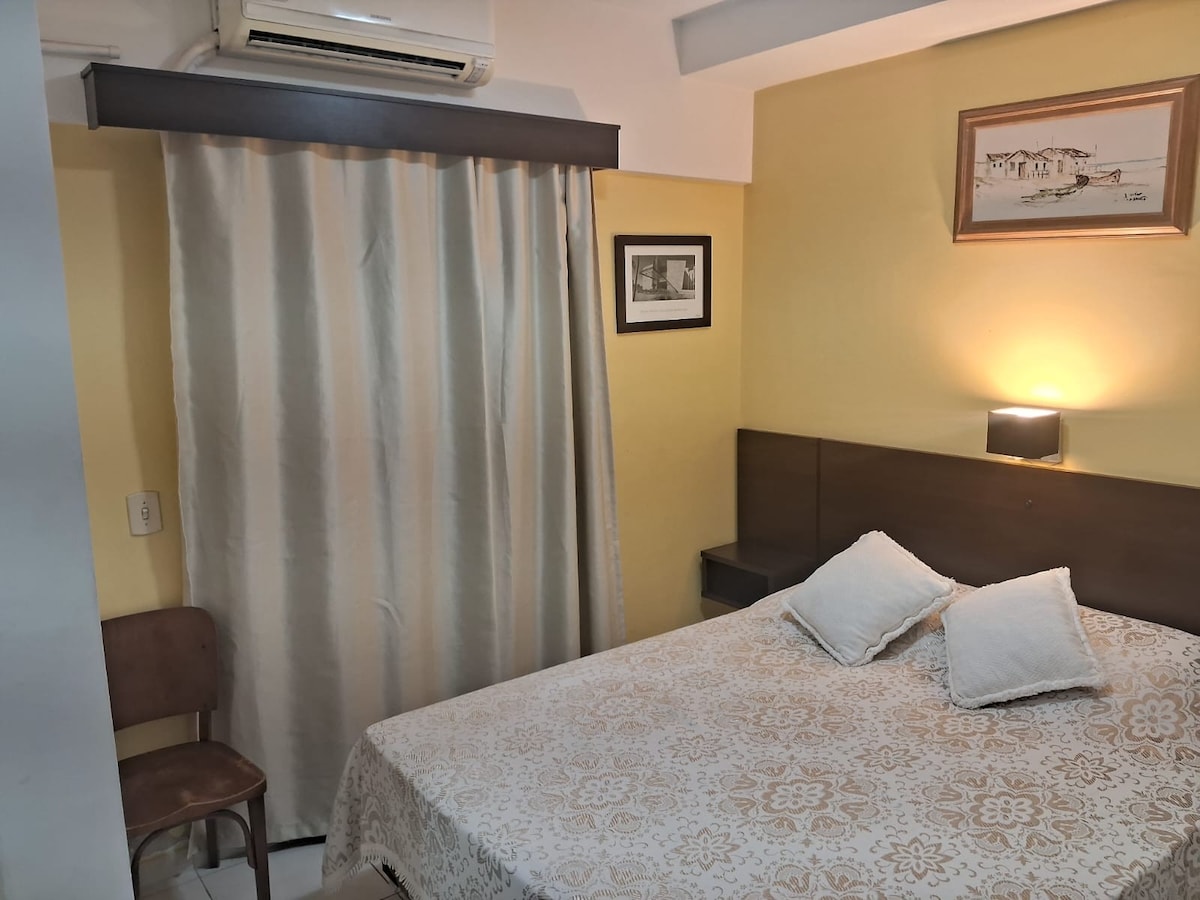 Venha desfrutar da melhor rede de studios da cidade de Bauru. Localização privilegiada, em frete a FIASP e a poucos passos do Instituto Mondelli e Centrinho / USP 🚗 1 vaga de garagem privativa dentro do prédio 🌞 Ar condicionado Split na suíte 🛜 Wi-Fi 🍔 cozinha completa 🎽 Máquina de Lavar Roupas Possuímos cama casal no quarto e um sofá cama na sala. O studio conta com 1 tv smart 50” na sala