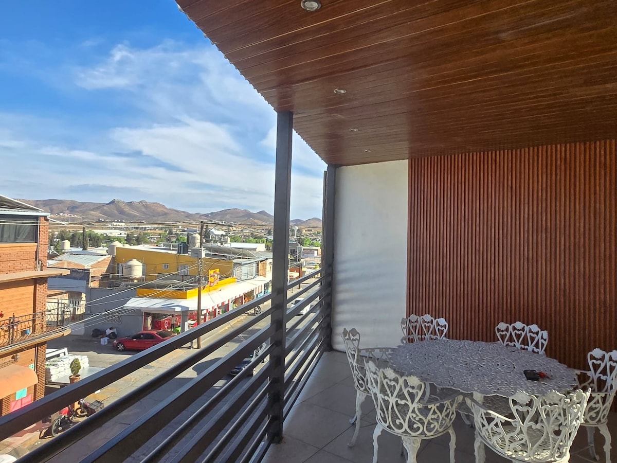 Vive la experiencia de hospedarte en un departamento colonial, ubicado en el centro de Hidalgo de Parral Chihuahua, además de un recibidor, estancia con pantalla y cable, comedor, cocina, podrás disfrutar de una hermosa vista desde su terraza