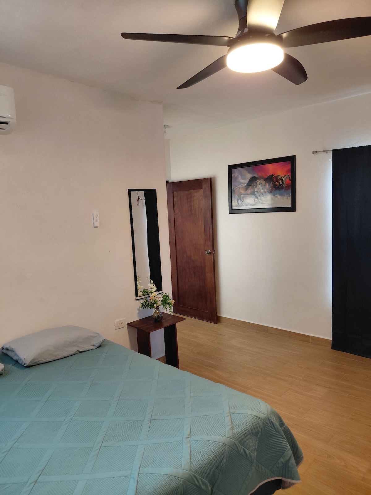 Linda casa de tres recamaras climatizadas con camas king y baño completo cada habitación. Estacionamiento techado con portón para dos vehículos, palapa, Terraza techada, asador, mesa, sillas, sala de jardín, pequeña alberca y jardín. Cocina equipada con estufa, horno, microondas, refrigerador, vajilla, cuchillería, vasos y copas, un comedor y una acogedora salita para disfrutar de una TV de 60” con conexión a internet y con servicio de Netflix. Todas las áreas con abanico de techo