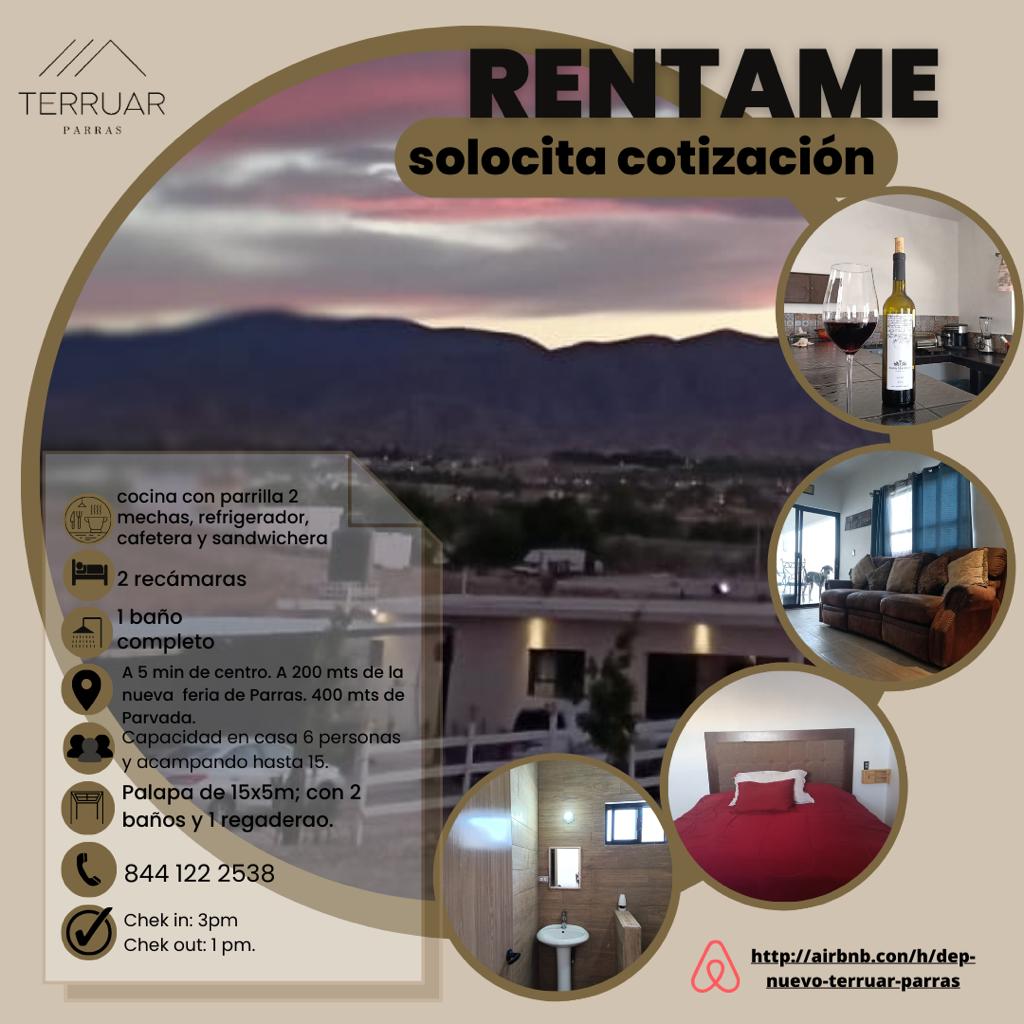 Queto’s Appartment, departamento super amplio para 4 personas, zona de asador y jardin para disfrutar el clima de Parras, estamos a 3 min del Rincon de Montero y 7 minutos de Parvada.