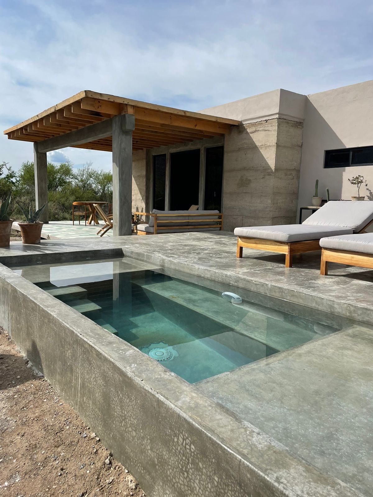 DeTierra es una suite de lujo en el desierto, construida con la antigüa técnica de “Rammed Earth” (tierra compactada). Esta diseñada para disfrutar de los paisajes y vistas semidesérticos del maravilloso Oasis de Parras, Coah. Las paredes mantienen una energía única para conectarte con la tierra y la naturaleza del lugar. Cada uno de los muros está construido 100% con la tierra del suelo que los sostiene.