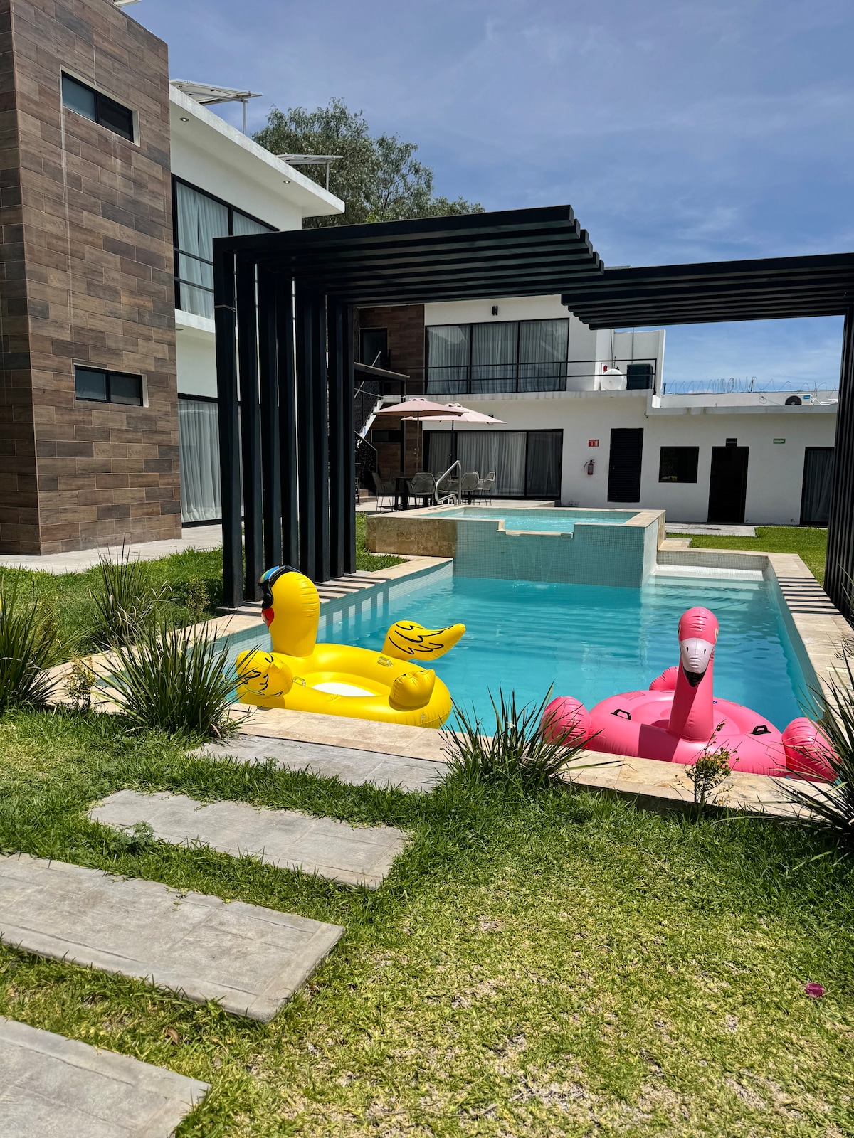 Lugar excepcional para descansar, habitaciones climatizadas con mini split frío-calor, cuentan con cortinas blackout, cómoda cama y almohadas para un descanso óptimo. Friego bar, cafetera. Puedes disfrutar de nuestras amenidades como jacuzzi y alberca climatizados, área de asadores, donde podrás asar tus cortes y disfrutar con un buen vino o cerveza, fogatero para esas noches frías, área de TV Bar (no venta, puedes consumir tus bebidas ahí viendo algún partido, escuchando música o viendo videos)