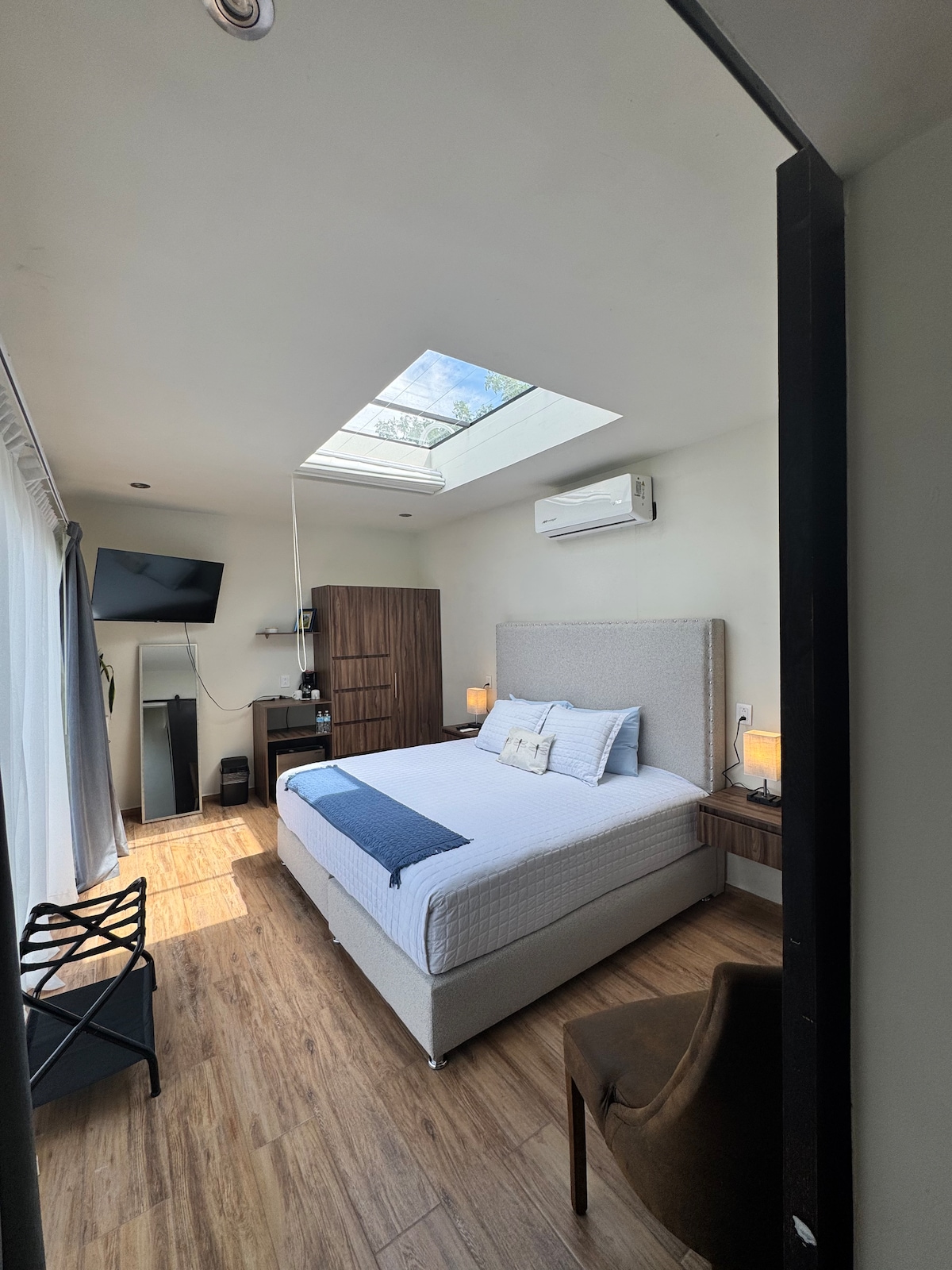 No querrás irte de este lugar tan único y encantador. suite sencilla cuenta con -wifi -1 cama queen -televisión S-Mart TV -netflix -mini split frío / calor -cafetera -frigobar -1 baño completo con agua caliente