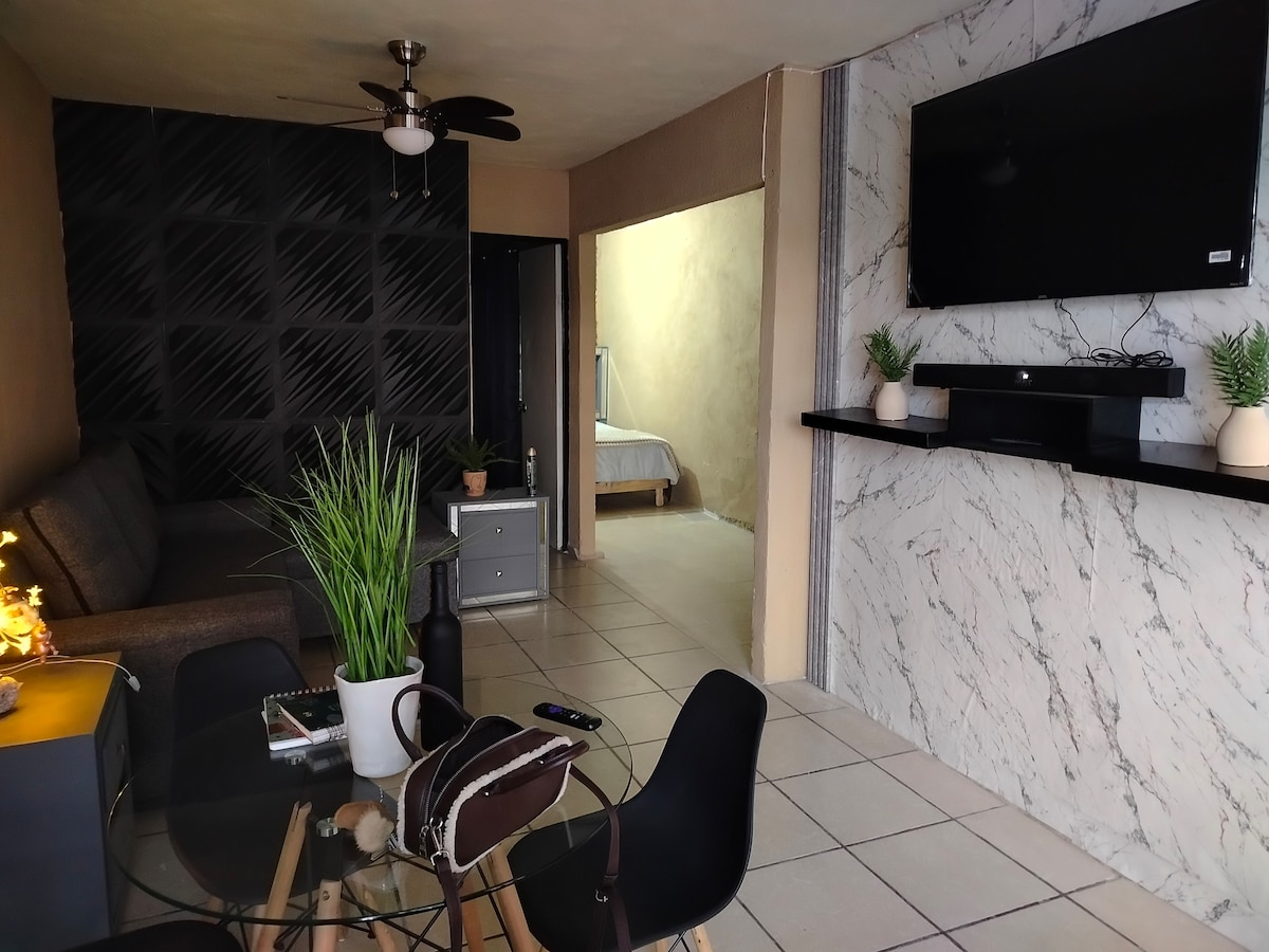 Este lugar nace de un proyecto familiar con una ubicación estratégica: ¡será muy fácil planear tu visita en el centro de Parras! a 2 cuadras de la alameda. 2 recamaras con 2 camas matrimoniales cada una y baños completos y un área donde se encuentra la sala comedor y cocina con sofá cama y baño completo. Las habitaciones cuentan con ventanas que bloquean la luz exterior y aíslan el ruido para que tu descanso sea total. Durante tu estancia estoy disponible *811825 1530 para servirte en tu viaje
