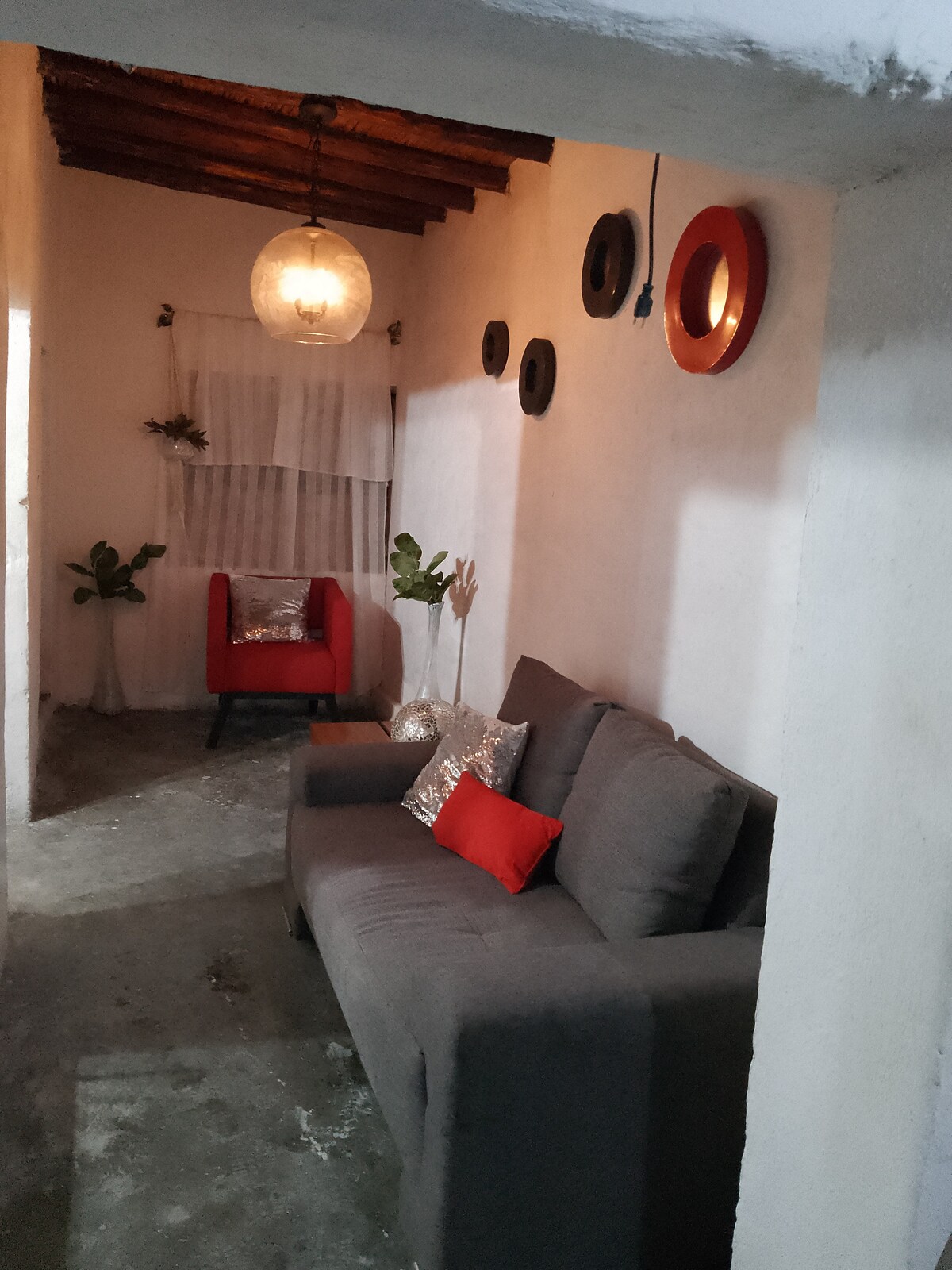 Casa de campo en zona de huertas y urbanizada con dos recámaras, sala comedor, cocina equipada (estufa, refrigerador, microondas, platos, vasos, cubiertos, etc.) baño completo (está afuera) y asador. A 8 minutos en carro al centro. Con alberca apertura en el mes de ABRIL. (En otoño e invierno ya no está disponible ).