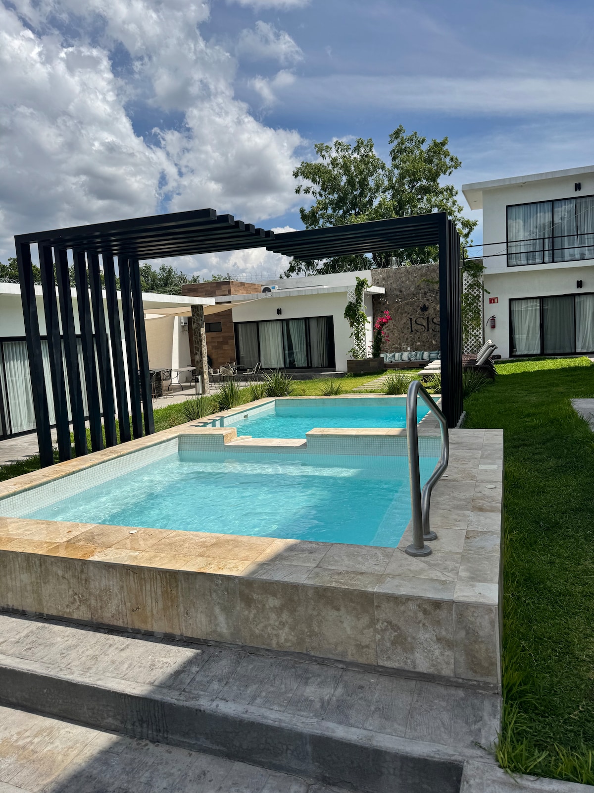 酒店内舒适的房间,配备游泳池和按摩浴缸
