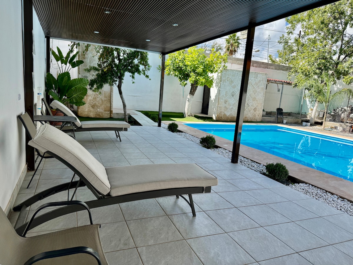 Linda casa recién restaurada en el Centro de Parras. Cuenta con áreas verdes, alberca climatizada, temazcal, comedor exterior con asador, estacionamiento, noria (con protección de acero), brincolín. Lugar ideal para descansar en familia. Todas las habitaciones cuentan con ventilador de techo y minisplit.