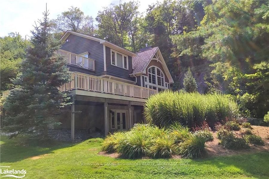 Welcome to our private, modern Scandinavian-style cottage, set on 3 acres of pristine land with conservation property across the water, ensuring ultimate privacy and tranquility. The cottage boasts floor-to-ceiling windows that invite natural light and offer stunning views of the Muskoka River and surrounding nature. Just 40 steps from the front door, you'll find a private beach and dock, offering calm, clear waters perfect for swimming—ideal for families with children.