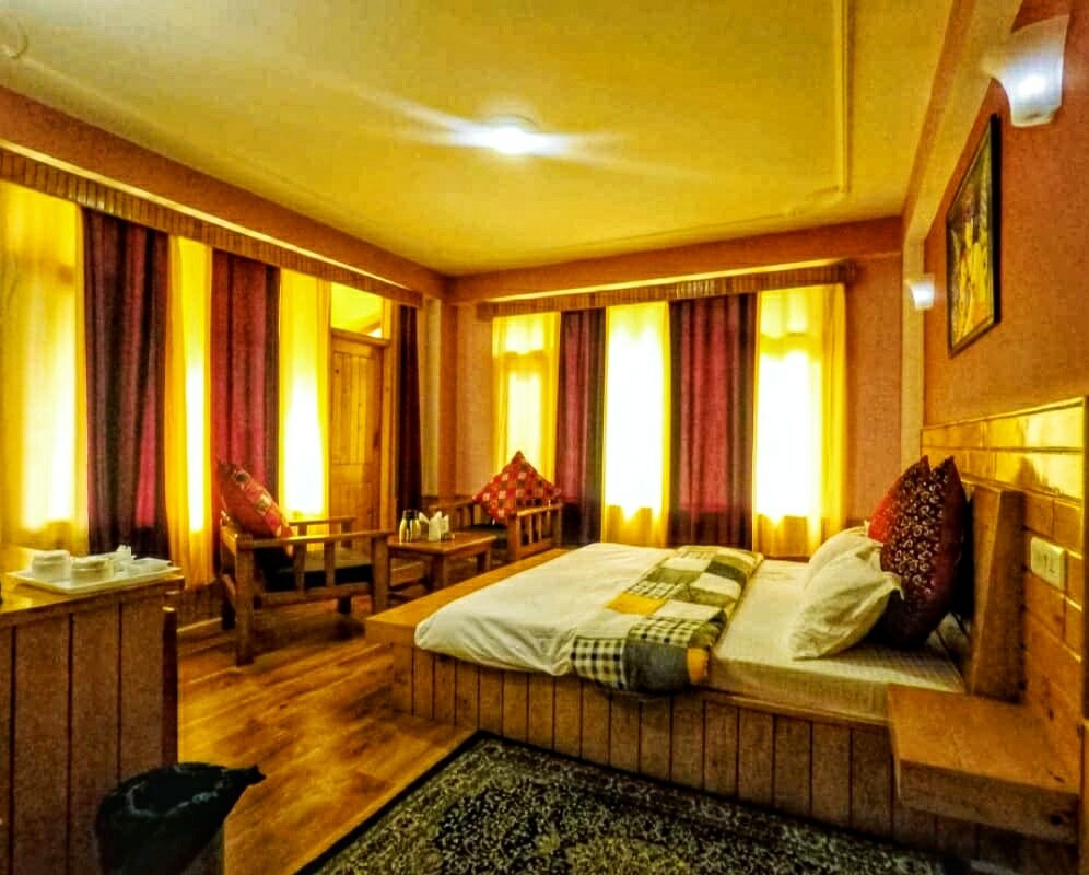 Rumsu Sunrise is our best Double Room. On the 2nd floor of the property it boasts of superb views of the valley and the surrounding apple orchards. It has an attached bathroom with running hot and cold water.