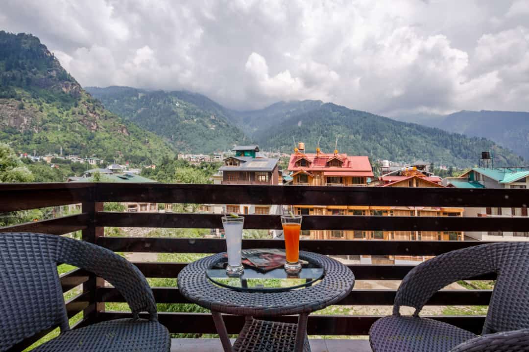 Property Name: The Panorama Retreat, Manali Centrally located | Just 10 mins/1.5 kms drive to Mall Road "Panoramic Mountain View" Room Located on Second Floor | Complimentary Breakfast | Mountain View | Attached Balcony | Complimentary Room Heater | Complimentary Bed Warmer | Alpine Grade Duvet | Very Comfortable Bedding | Attached Washroom | Onsite Free Parking | Spacious | Timeless Interiors | 43 inch Smart TV | Tea & Coffee Amenities | Kettle | Professionally Cleaned | Hygienic | Hot Water