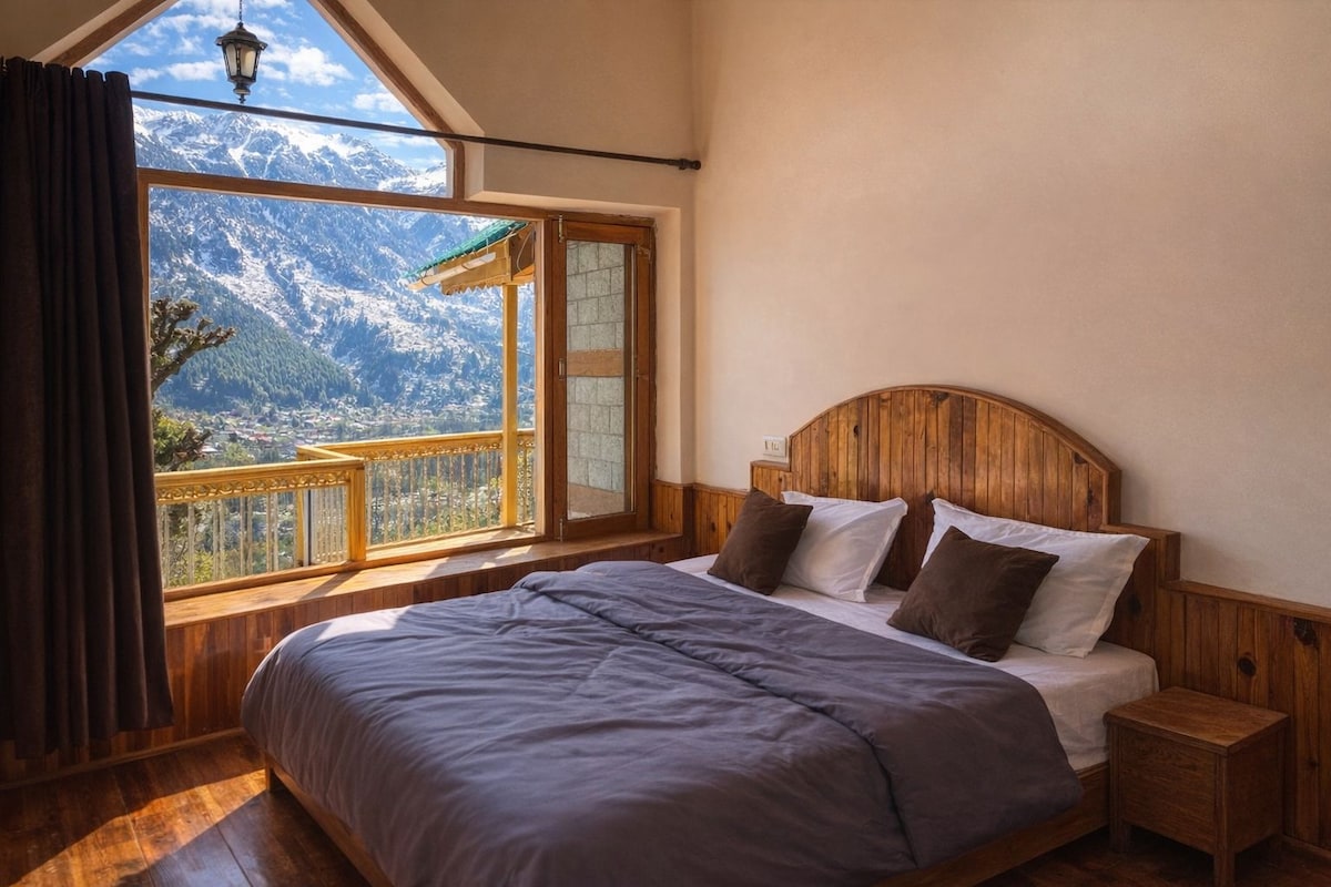 Take it easy at theVasoville Manali | Luxury Glass House Stay near Mall Road (3 km) with Mountain View Boutique Airbnb with 5 rooms including Jacuzzi rooms, AC rooms & balcony view. per Room max 3 guest with extra mattress. Enjoy panoramic Himalayan views, snow-capped mountains, infinity valley view, bonfire lawn, dining area & peaceful location. Ideal for couples, families & groups seeking a luxury homestay in Manali unique and tranquil getaway. 20-30 meter walk to the stay from road in orchid.