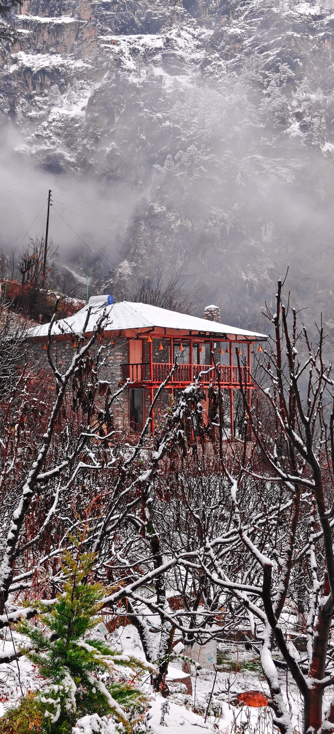 A house in the heart of the Himalayas, away from the hustle of the city. Enjoy a serene view of the valley surrounded by plum, apple, persimmon and other trees. A peaceful location which is perfect for a relaxing vacation or work-ation. Wake up to an amazing view of the mountains, enjoy a relaxing day reading a book in the balcony, or explore the many nearby sites and adventure activities; This location offers something for everyone.