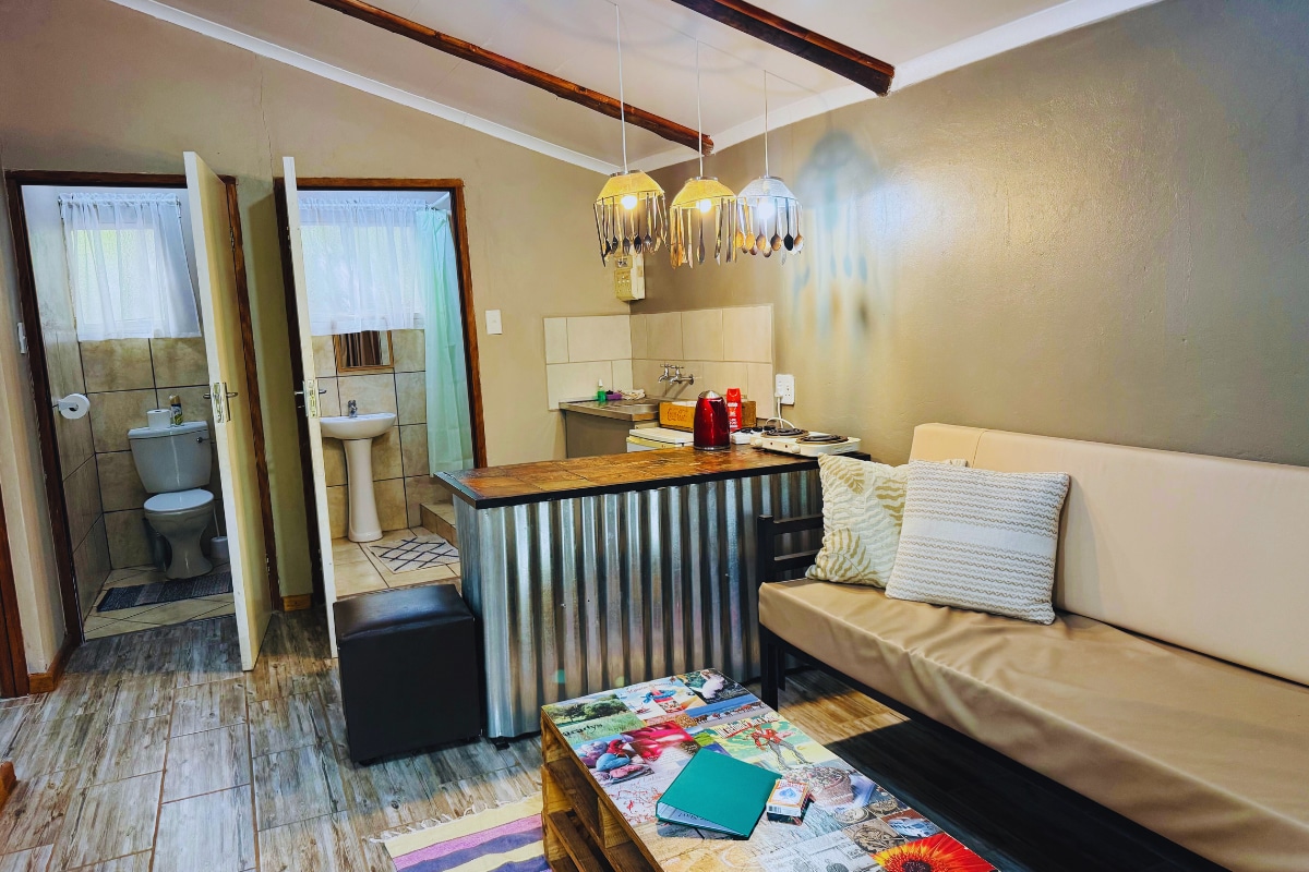 Experience the night sky under the stars by soaking in our wood fired hot tub. Our outdoor area is situated in a sucluded old water resservoir and lends itself to the open skies. The quant little house is completely off-grid but boasts all the necessary amenities to make your stay unforgettable; Free Wifi, hot water showers, Fire-pit and Hot-tub. This rustic experience also offers walking trails, private Vaal River access (1km from the house) and the renowned Ertjies Berg Cycle route.