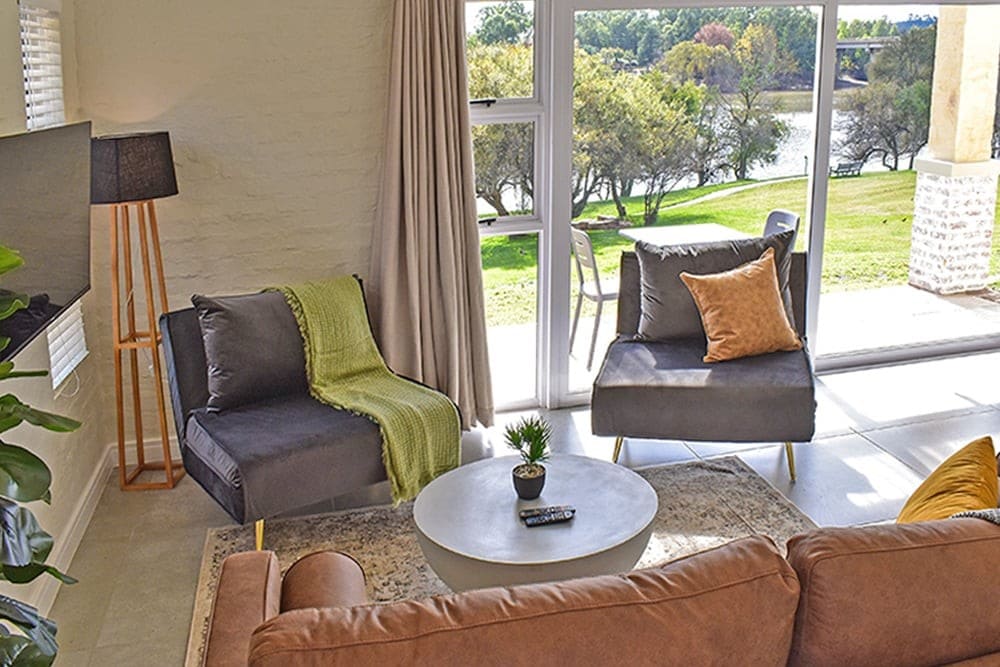 The home is situated on the River! It is styled elegantly minimalist with a French Provence ambience. It has modern appliances and private spaces for quiet moments. There are secure pathways for leisurely walks to and from the Spa, Restaurant and picnic areas. The Restuarant and Spa on the estate require prior booking. They are a mere 5 minimum walk away!