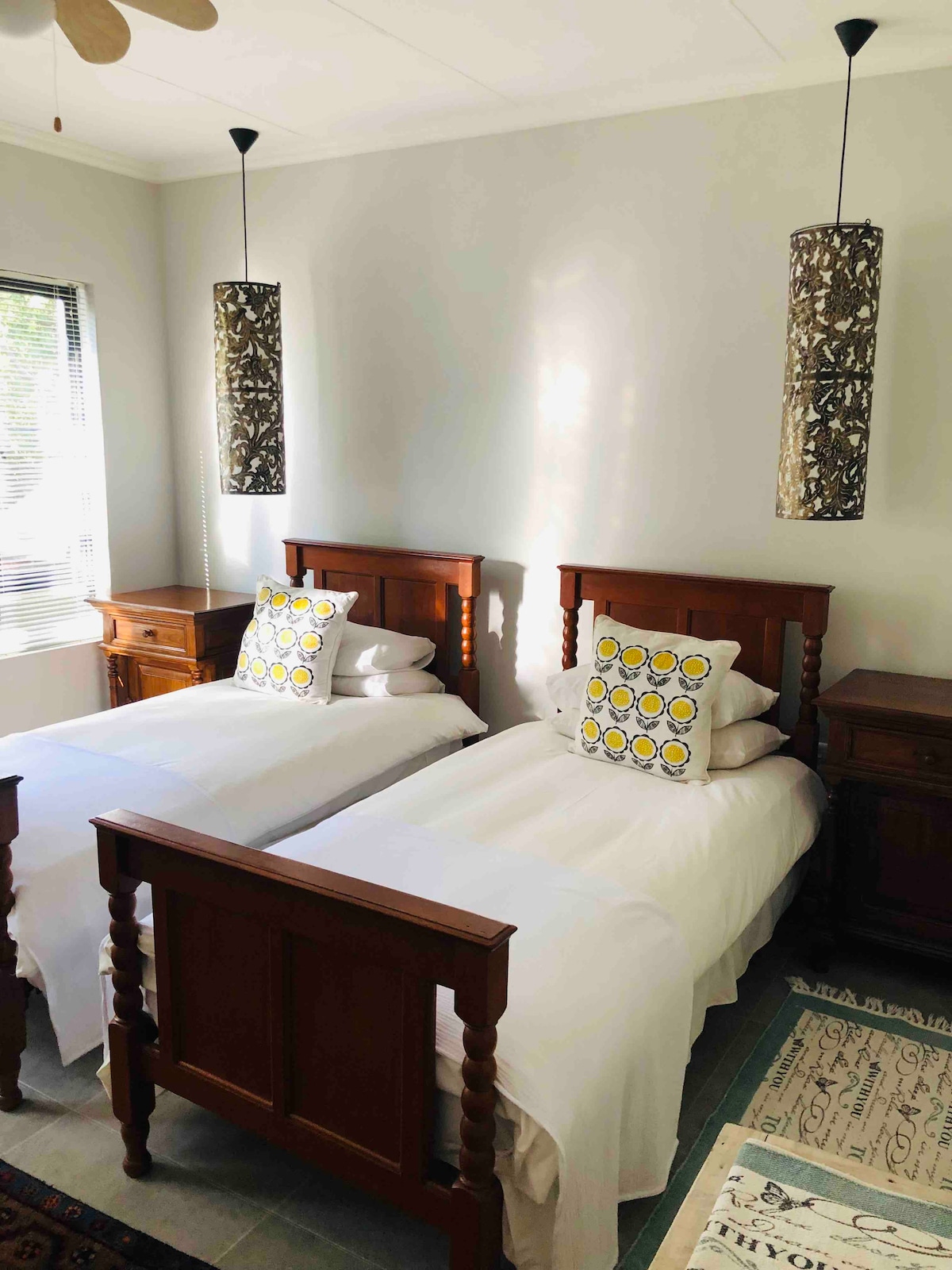 Enjoy a stylish experience at this centrally-located place in quiet street. Walking distance to town and river and close to golf course. Own water tank as well as solar electricity with backup.