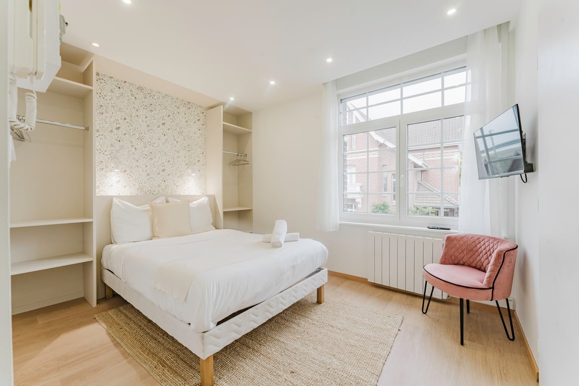 This charming apartment is located in a quiet and residential area of La Madeleine, avenue Foubert. It is on the 3rd floor without elevator. You will be at the gates of Lille, the two stations are easily accessible in a few minutes on foot. The accommodation is warm, well equipped and even has a terrace. Ideal for visiting the region and/or for your business trips!