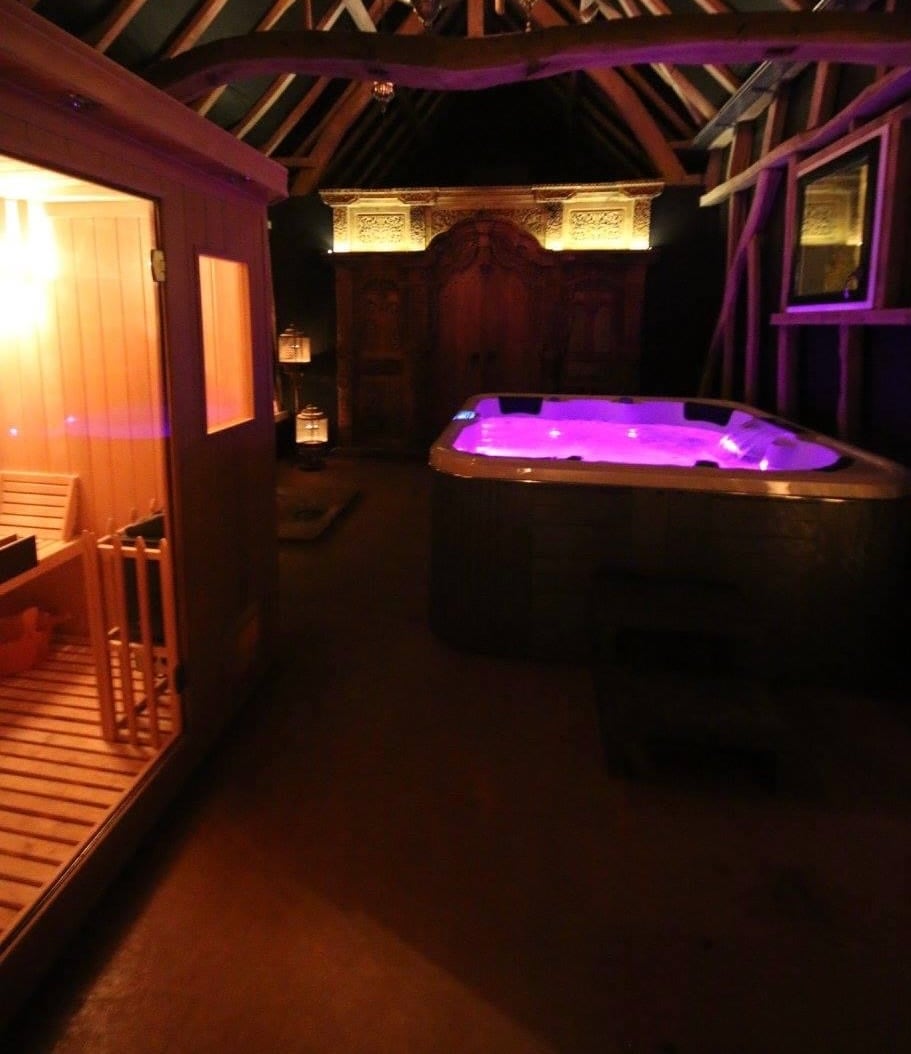 Logement de charme situé a Ruminghem Profitez d'un moment romantique en toute intimité dans votre espace détente privatif vue sur la terrasse Sauna à pierres avec huile de monoi Prélassez-vous dans le jacuzzi, massé par de multiples jets avec bluetooth intégré ! Une cuisine aménagée vous permet de vous restaurer sur place réfrigérateur, plaques induction, four,micro-ondes, cafetière senseo avec dosettes Lit king size Petits déjeuners inclus parking privatif / wifi Livraison de pizzas possible.