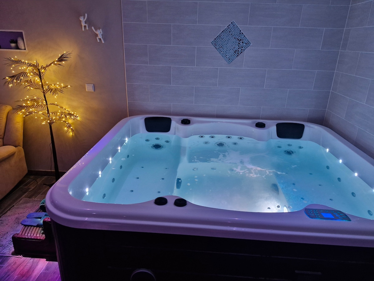 Logement privatisé accès par un portail. Place de parking. Le studio de 50m² est équipé d'un jacuzzi 5 places dont 2 places allongés,un lit de 160 cm, une double douche a l'italienne, un coin-repas, un coin salon avec fauteuil relax très confortable et un coin cuisine, une terrasse avec cendrier et salon de jardin le tout totalement privatisé, équipé d'une TV connecté ,d'une colonne de son, et d'une connexion Wi-Fi. N'hésitez plus à réserver pour venir vous évadez le temps d'une nuit ou plus