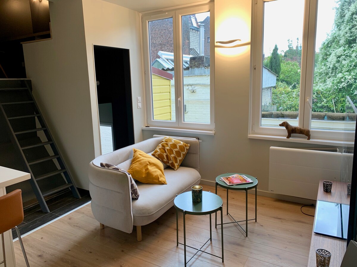 萨尔特温馨单间公寓,带露台,10分钟到里尔