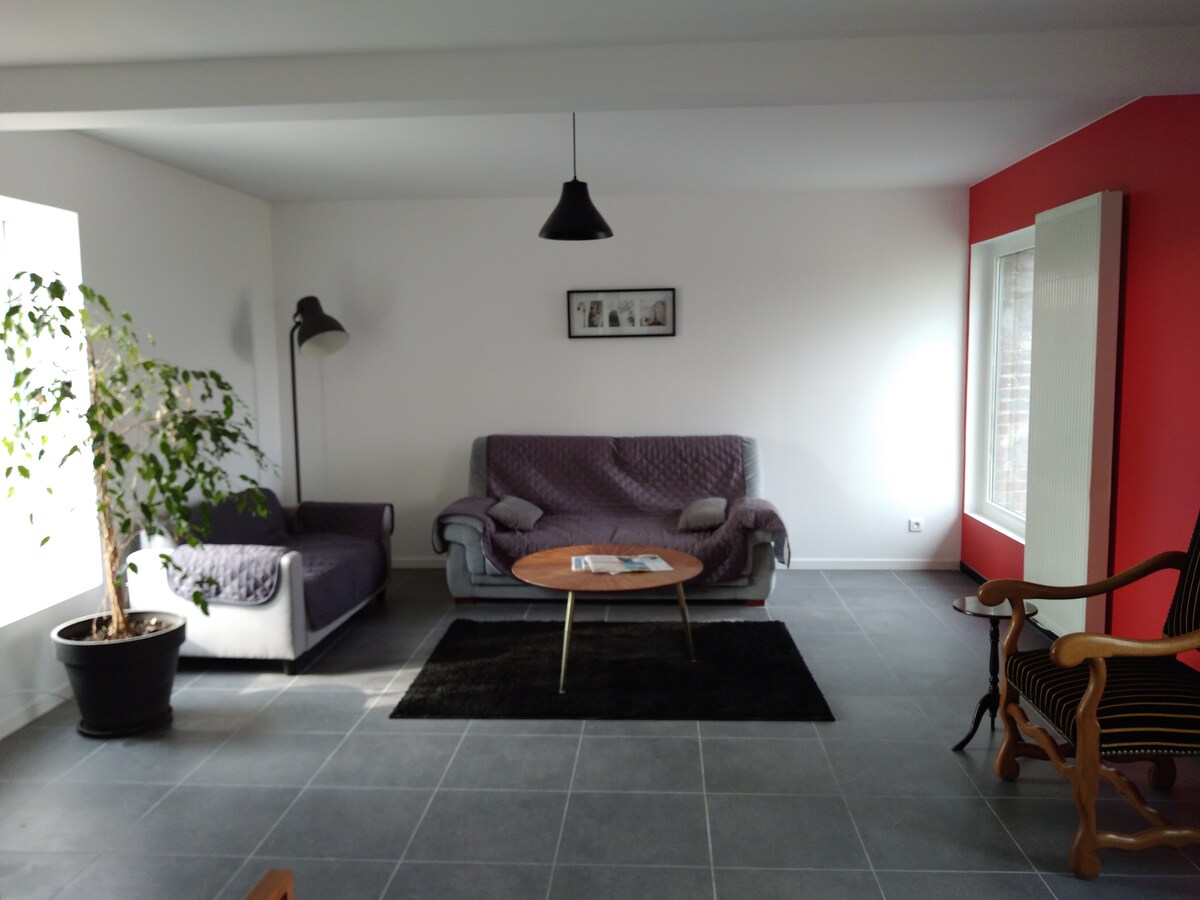 Studio privatif avec jardin situé à 5 minutes à pied du Louvre Lens, 2 minutes en voiture du stade Bollaert, 10 minutes de Vimy, 20 Minutes d'Arras et 30 de Lille. Logement avec cuisine équipée, salle de bain avec lave-linge, dressing, wifi très haut débit, smart TV avec Netflix. Wc séparés. Studio avec 1 lit (160*200) pouvant être séparé en 2 à la demande (2 lits de 80/200) + 1 canapé Le jardin privatif possède un salon de jardin. Le lit sera fait, serviettes de toilette à disposition.