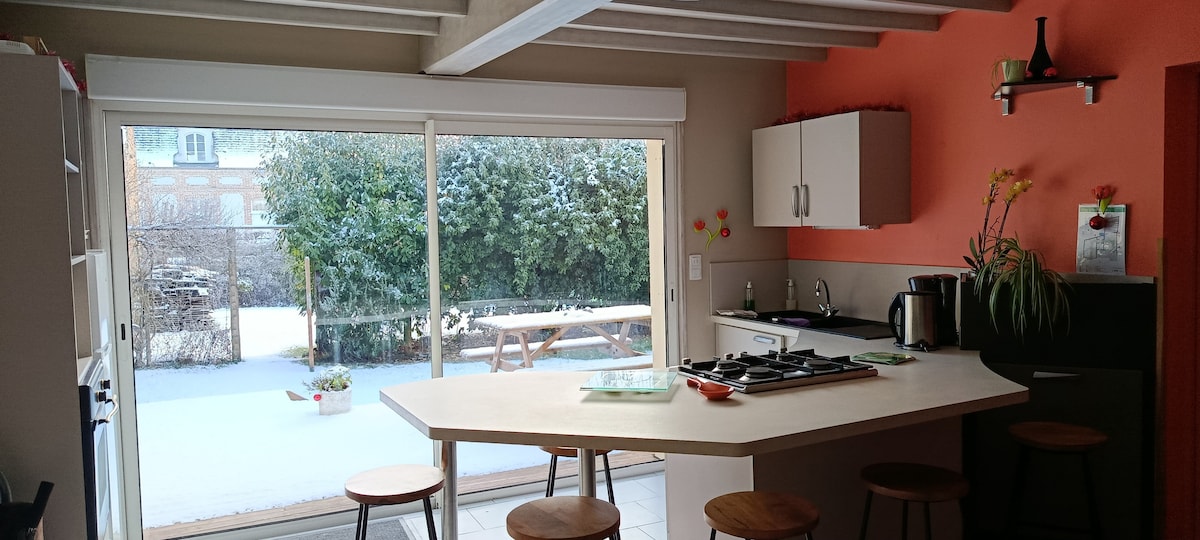 Logement familial entièrement rénové, lumineux et confortable dans un écrin de verdure, situé à 15 min à pieds du centre ville d’Arras et proche des commerces (boulangerie à 5min). Proximité immédiate de la Scarpe pour de belles balades au bord de l’eau tout en profitant de la ville dans une maison avec stationnement gratuit devant . La proximité immédiate des grands axes permet un accès rapide aux grands sites de la région Louvre Lens, mémorial canadien Vimy, musée minier de Lewarde…