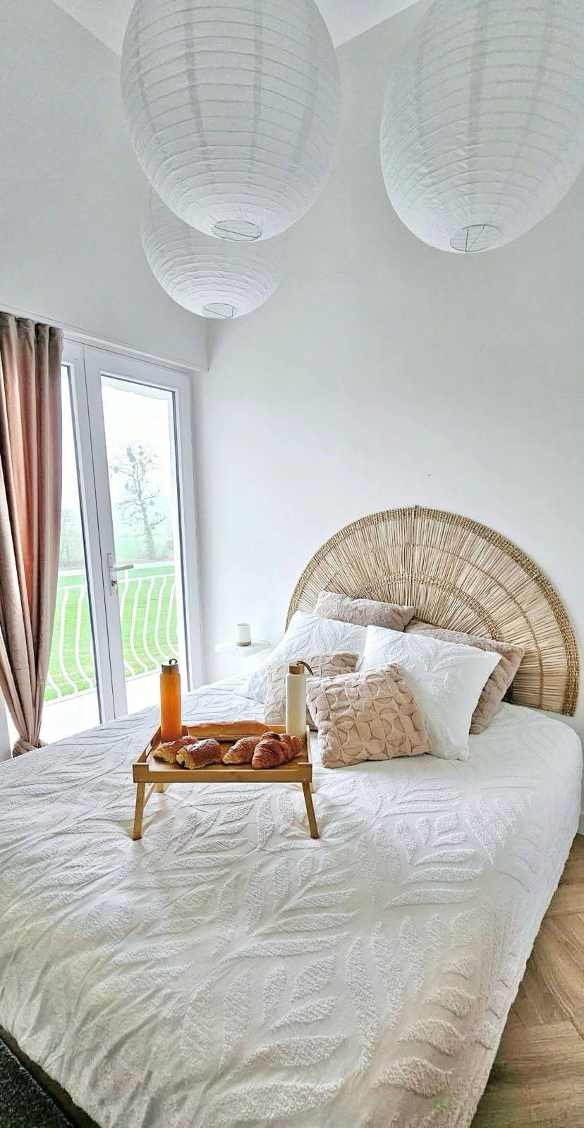 Charmant gîte 70m2 avec jacuzzi en pleine nature offrant une vue dégagée sur les champs. Il dispose d'une belle pièce de vie avec cuisine équipée , une salle de bain avec douche à l'italienne, d'un jacuzzi thérapeutique 5 places pour un confort optimal avec vue incroyable et rare sur le secteur garantissant le calme et le bien être ainsi que d'une terrasse. Deux belles chambres disposant chacune d'un balcon pour profiter de la tranquillité et d'un paysage champêtre. Option petit déjeuner