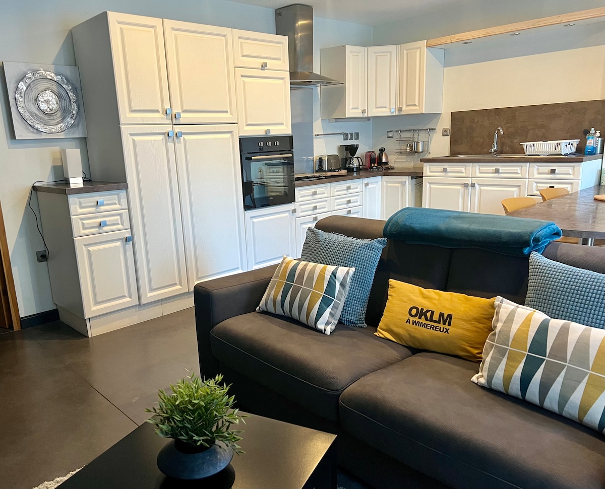 Nous espérons bientôt vous accueillir dans notre nouvel appartement de « La Maison Rouge » situé sur l’axe autoroutier et SNCF Lille/Dunkerque, Gare et Sortie d’autoroute proche du village). - Appartement indépendant - Grande terrasse avec vue panoramique sur la campagne - Poêle à bois - Cuisine entièrement équipée + lave-linge séchant - Literie 180/200 très soigneusement choisie afin de vous assurer un maximum de confort - Wifi fibre ultra rapide, Apple et Orange Tv - Nombreux commerces à pieds