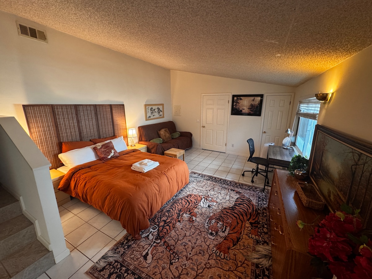 Whether you're seeking a quiet weekend getaway, or simply looking to unwind in a peaceful and relaxing environment, this private guesthouse is perfect for you! This secluded studio is newly renovated and set amidst a spacious outdoor living space consisting of a beautifully preserved tree house, refreshing salt water pool, and BBQ patio/lounge area. An outdoor daybed also makes for a perfect spot to kick back and read your favorite books, surf the web, or catch up on some much needed sleep!