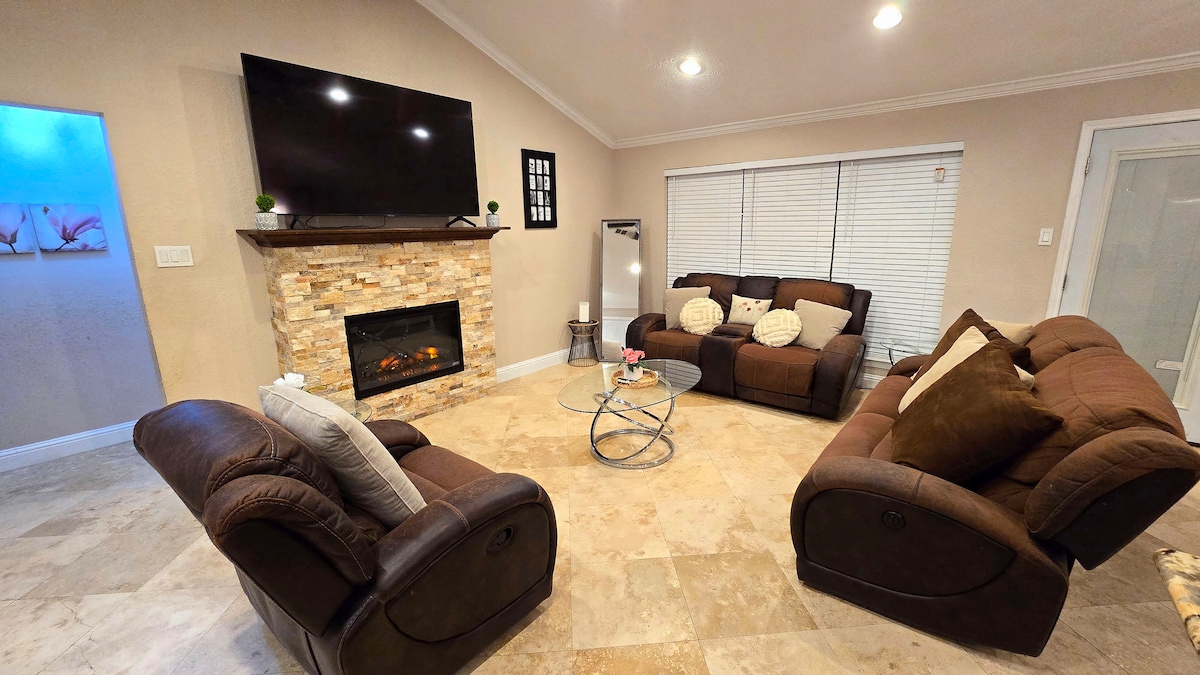 Private, serene & clean guesthouse w/everything you need in a spacious 700 sq ft. • Personally cleaned by your SuperHost • Fast Wi‑Fi (532 Mbps) • In‑unit washer/dryer • Dedicated workspace • Full kitchen stocked w/basics • Excellent AC/Heat • Cozy couch & recliner • 55" Smart TV with Hulu & Disney+ included • Private bathroom & shower stocked with essentials • Outdoor lighted gardens w/ soothing water features Completely Detached from Main House Midway Houston/Galveston, a perfect home base!