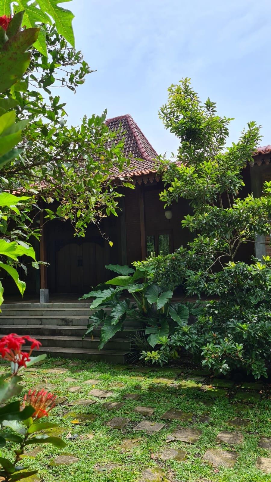 A private and unique Villa by the river in Ngaglik Sleman, just up north jalan Palagan, only 6,5 km from Monument Jogja Kembali. The 1000sqm land has big trees, two villas, a plung pool, a wooden deck by .the river and one corner of vegetables and fruits garden.