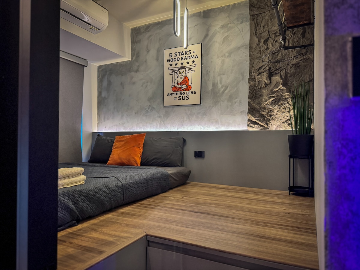 This beautiful & cozy studio is located in the heart of the city, just a short walk from all the major attractions. It features a comfortable queen-sized bed, a fully equipped kitchen, & a modern bathroom. Enjoy the stunning views of the city from your own private balcony. The perfect place for a romantic getaway or a solo adventure. Book now and experience the best of the city!