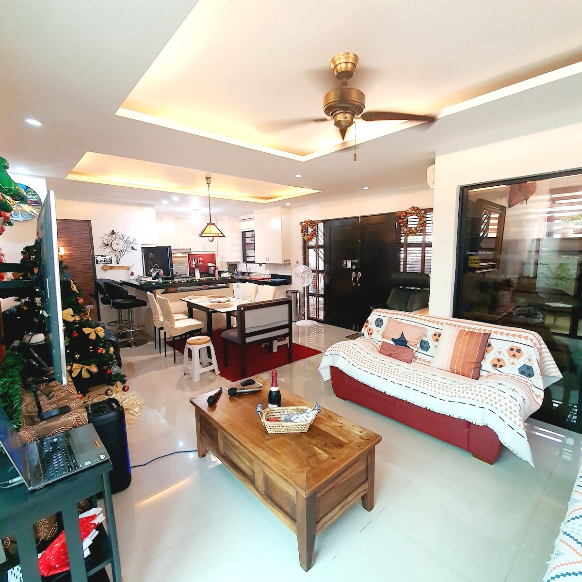 Perfect for mid/long-term stays — complete comfort awaits! 💻 Up to 300Mbps Fiber Wi-Fi + Workspace ☕ Free Coffee, Light Brekky & Snacks 📺 Netflix, Prime & Disney+ 🏊♀️ Free Pool/Gym Access (3 pax) 🎲 Videoke & Board Games, Outdoor kid's playground, billiards (w/ a fee) ❄️ Aircon + Air Filter 🛁 Hot/Cold Shower, Bidet, Towels, Toiletries 🍳 Stove, Rice Cooker, Microwave, Coffee Maker, Ref, Dinnerware, cooking utensils 💧 Purified Drinking H20 🕯️ Diffuser, Alcohol 🖤 Blackout curtains