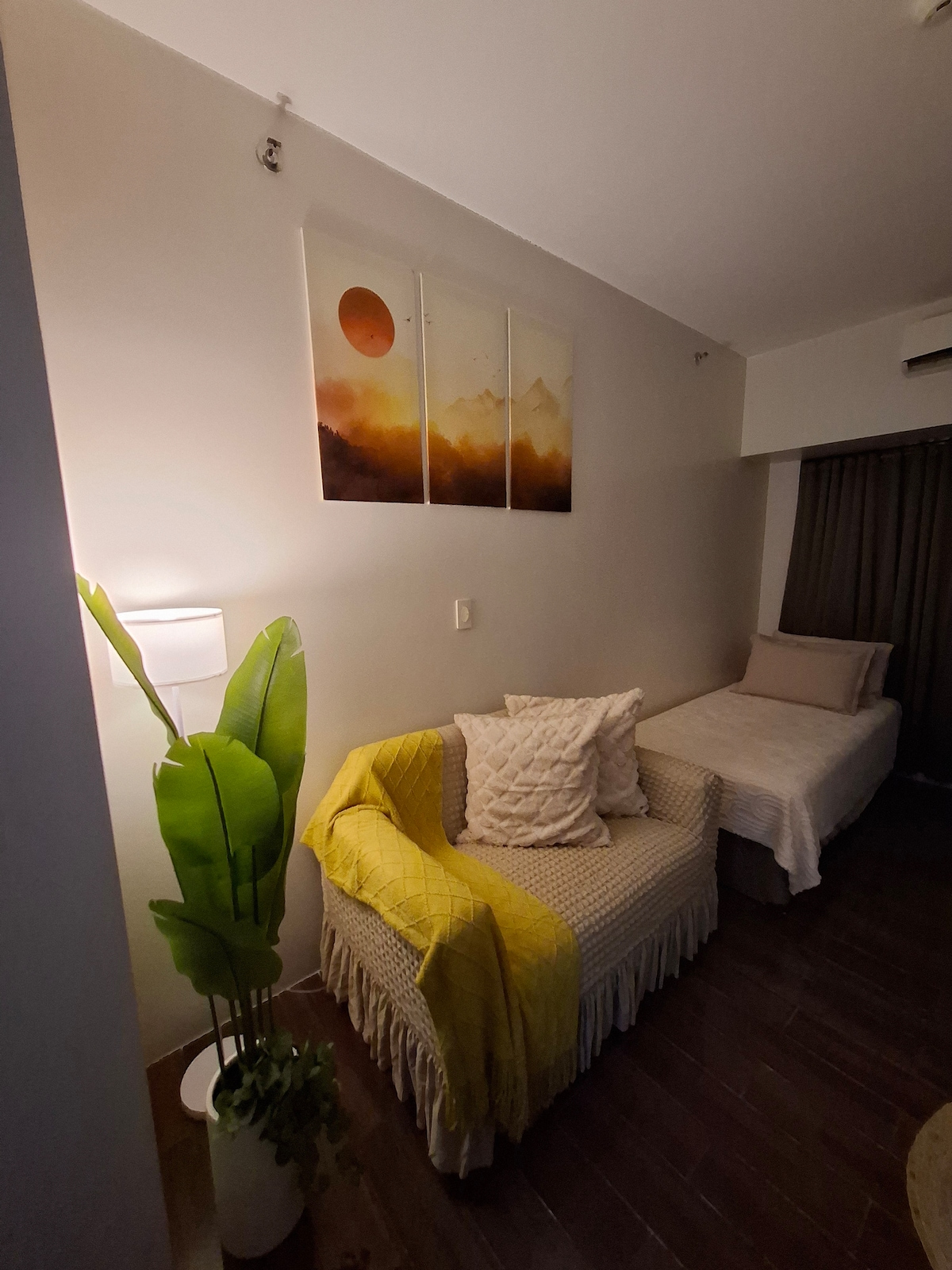 Welcome to our stylishly furnished 1-bedroom condo, where comfort meets luxury. Enjoy breathtaking city views frm your private balcony, perfect for morning coffee or evening relaxation. Guests have access to exclusive amenities. You will have convenient access to shopping mall at your doorsteps! With a super market, restaurants, bars, & 7/11 to cater to your needs 24/7. Experience the best of urban living in this prime location, designed for both relaxation and adventure. Book your stay today!