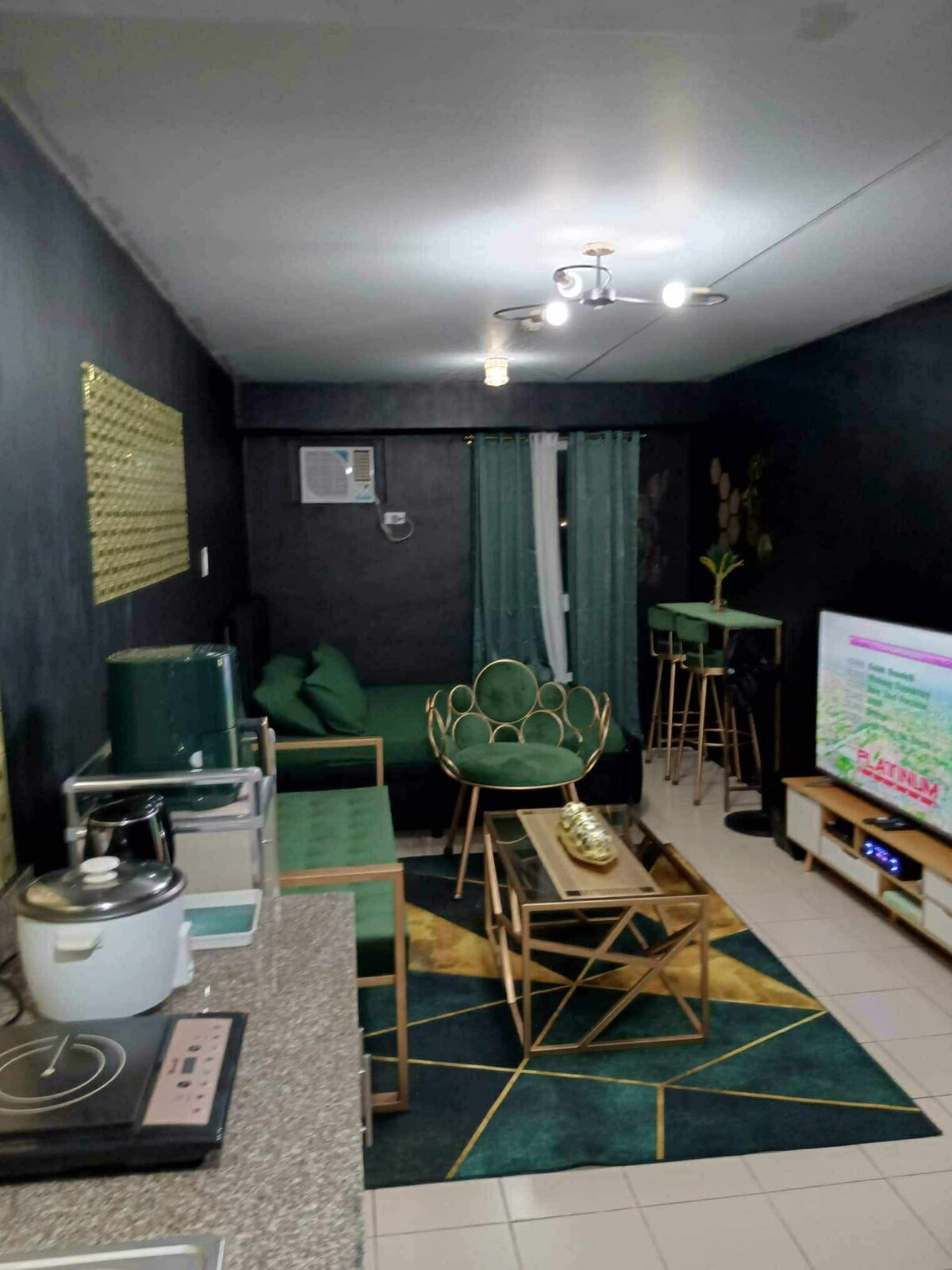 Indulge in this calming and stylish studio on top of Venice Mall within 8 minutes from BGC & wake up to views of the city skyline. This refined space sleeps 3 adults comfortably or 3 adults and up to 2 children and offers exclusive access to resort-style amenities: sparkling pool, gym, sauna, bball/tennis courts, playgrounds, and a business center. Shopping, dining, fast food, arcades, play centers and cinemas are just an elevator ride away or make it a movie night with a 65"TV & surround sound