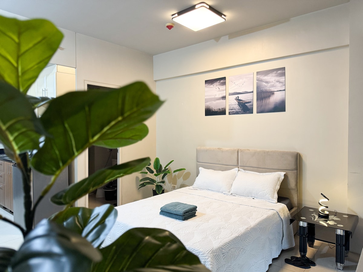 A cozy modern Scandinavian/tropical retreat nestled in the heart of the city. This is a place where you can relax, unwind and have fun with your loved ones or just by yourself. The living area is adorned with light-colored wooden floors, providing a warm and welcoming ambiance. Furnished with simple yet stylish Scandinavian/Tropical furniture. The kitchen is fully functional. Equipped with all your cooking needs. The bedroom’s minimalist design will for sure give you a restful night’s sleep.