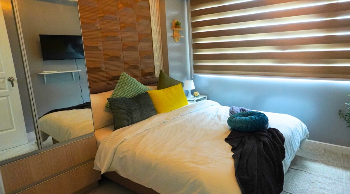 My unit can accommodate up to 5 pax comfortably. With 1st bedroom Queen Bed, 2nd bedroom 2 single beds and a sofa bed available upon request.The whole group will enjoy easy access to everything from this centrally located place. 10-15 mis walk to Mall of Asia. Shared Amenities for all Shore Residences. ❤️ Please know that any additional person will be charged 650pesos. Welcome to JC&JARB Suites! Have a cozy stay! Thanks.