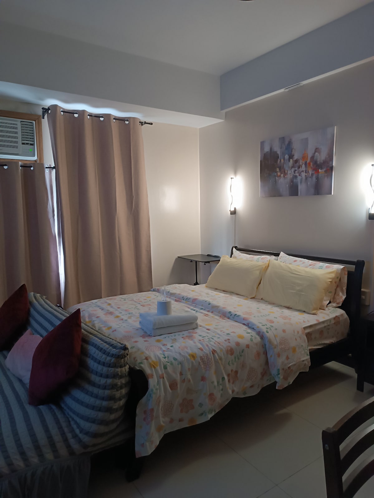 Welcome to MELON studio. Our unit is fully furnished, with good bed, good bedding, full utensils, 300mbps wifi and smart TV, free drinking water (in galon, short term only 1 galon provide), We have 50" Smart, we have free NETFLIX and HBO GO, you can enjoy your days here. Besides, this unit has a parking lot, if you want to book with a parking lot. We will need to charge extra 300 pesos. Please provide your vehicle ORCR and driving license for registration in our Admin and security office