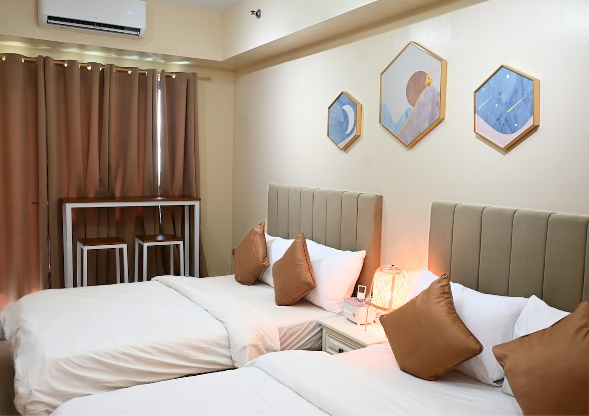 This special place is close to everything, making it easy to plan your visit. Near to Malls - Sm Mall of Asia - Robinsons Manila - Sm Manila Historical Landmarks -Cultural Center of the Philippines -Luneta Park Places American Embassy Fully Equipped Kitchen -Pots and Pans -Rice Cooker -Coffee Maker -Electric Kettle -Toaster -Blender Amenities and Funitures -2 Single Beds that can be combined -2 Large Sofabed that can accomodate 4 persons -Dining Table -Dining Chairs Fast Wifi 400mbps