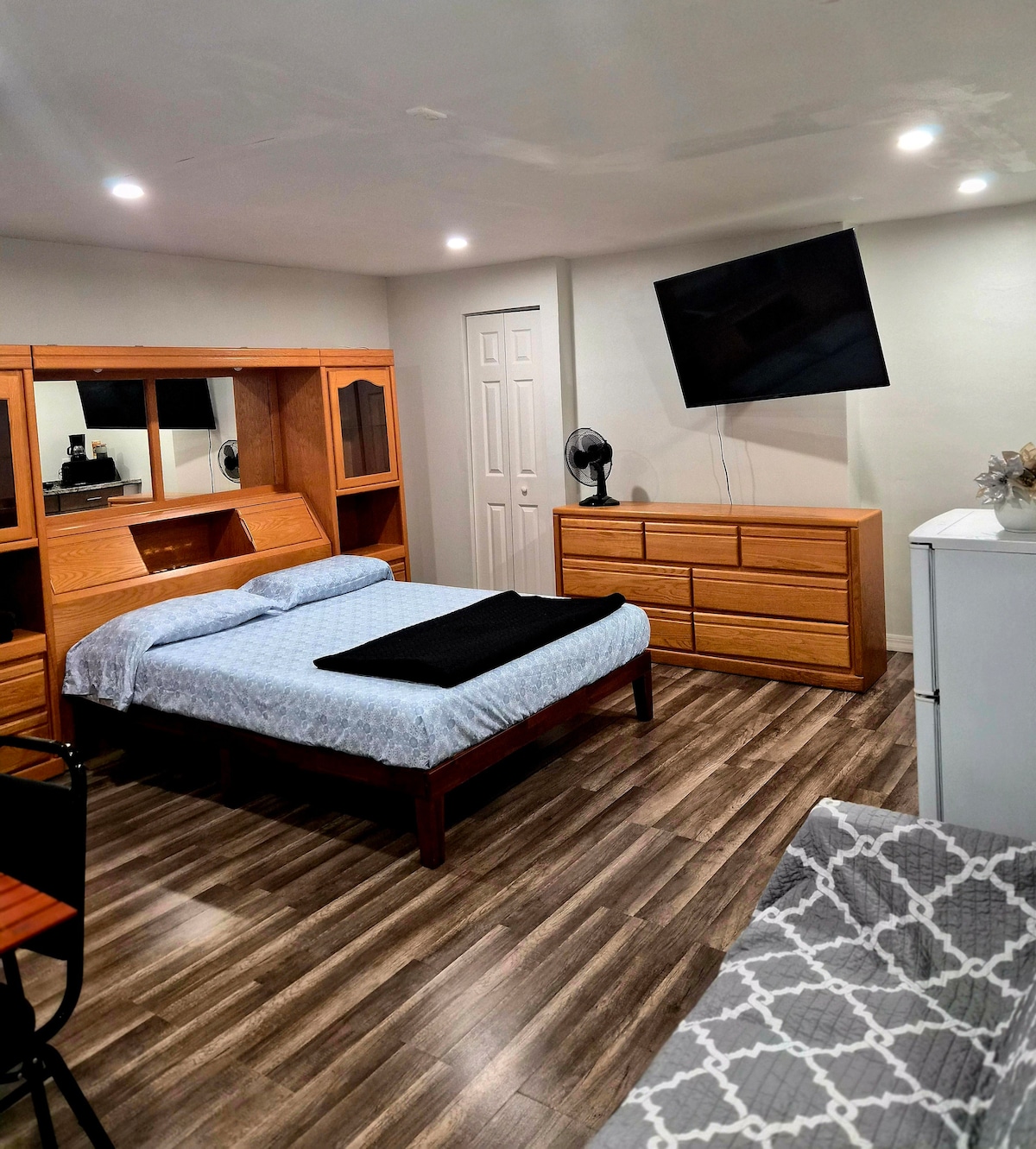 Kick back and relax in this calm, stylish space. This updated one bedroom suite apartment contains a smart TV in the bedroom and living room. The fully stop kitchen is designed to make you feel at home. Enjoy your morning coffee or a nice night under the lights on the private patio. The suite is located only a short drive from downtown, parks, local, restaurants, and beaches. we’re always available to answer questions and concerns. Reserve now for an unforgettable stay.