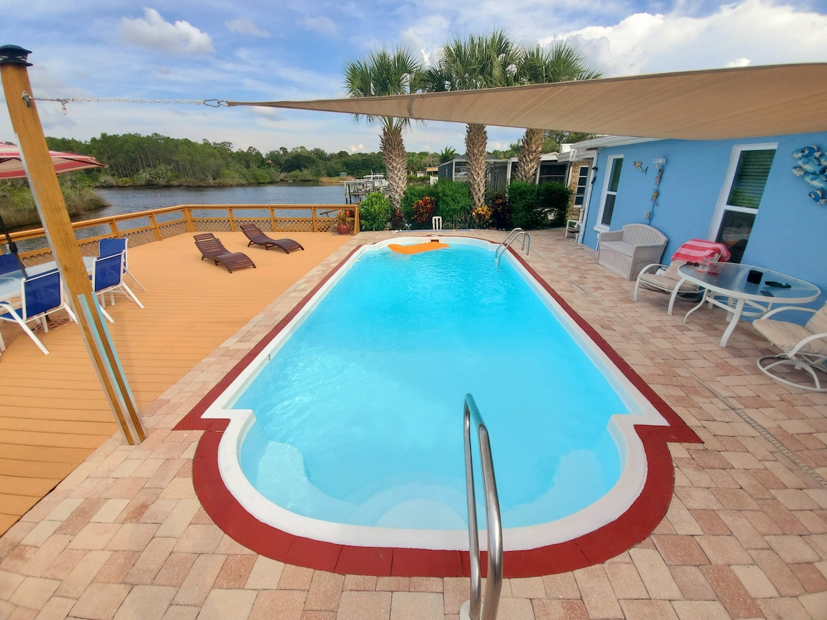 WATERFRONT GEM! This is a stunning Waterfront Property located on the Anclote River, across from a 2-acre conservation island. The photos truly speak for themselves! So peaceful, tranquility and privacy is guaranteed as you lounge around on the large deck, and enjoy your own private solar heated pool. The property has a very central location in the Tampa bay area, and is close to many attractions. This is an ideal Rental if you are a keen golfer or just want to relax on Florida's beaches.