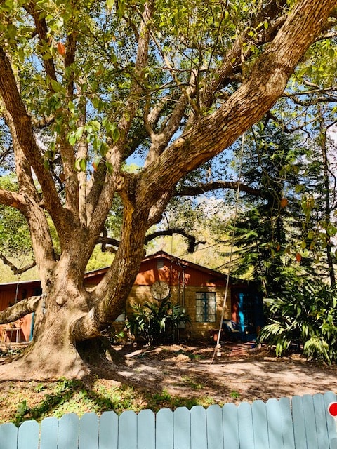 A charming cottage nestled beneath majestic oak trees, combining country living within reach of city amenities. This comfortable space features one bedroom with a king size bed along with built in bunk beds in the main living area. Savor a morning cup of coffee in the screened back porch while enjoying the beautiful tropical foliage. Chickens, goats, cows, and a horse forage nearby. You could possibly be entertained by the goats playing on the roof-tops.