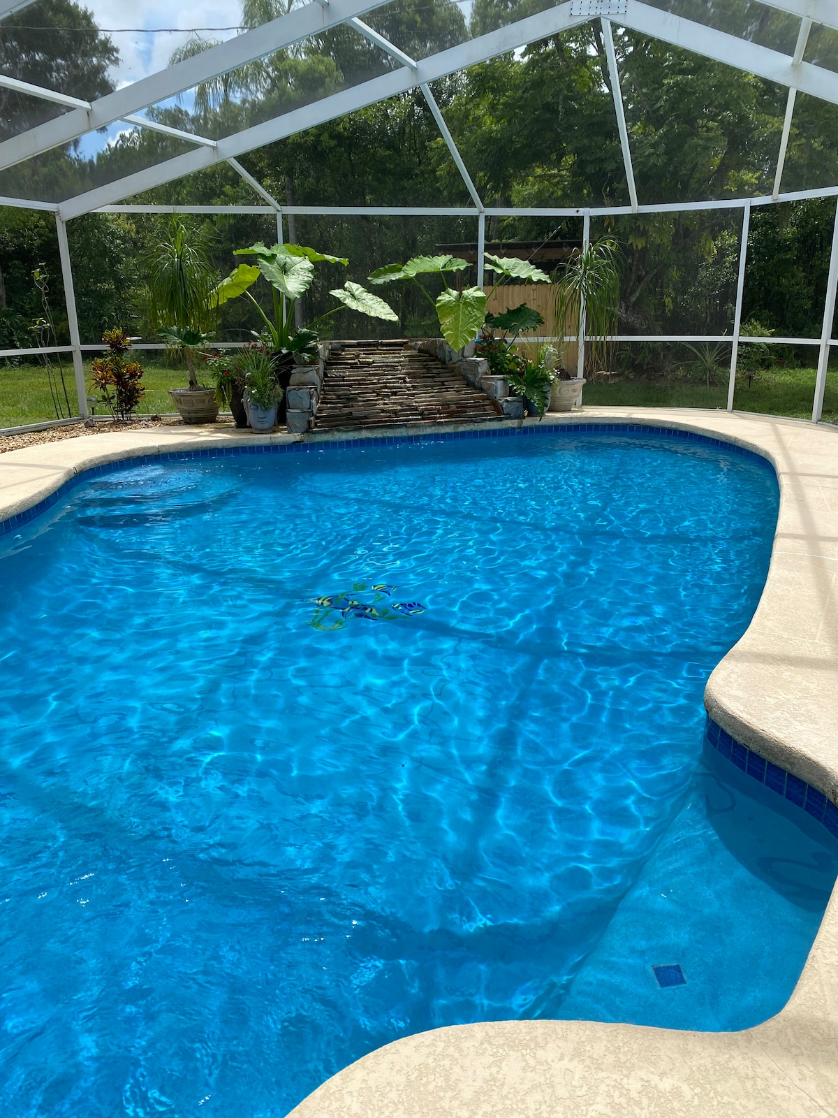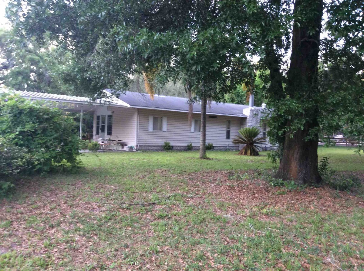 The Guesthouse at 3 Ponds Farm is located in Central Florida on a 22 acre family farm, at the end of a gravel country road. The house is private and secluded, situated under majestic oaks dripping in Spanish moss, and is convenient to both popular amusement parks and Florida's beautiful natural springs and wildlife. Enjoy the pool (not heated) fire pit & yard games The Guesthouse is perfect for a family vacation, girls getaway, fishing trip, or to celebrate a romantic anniversary.