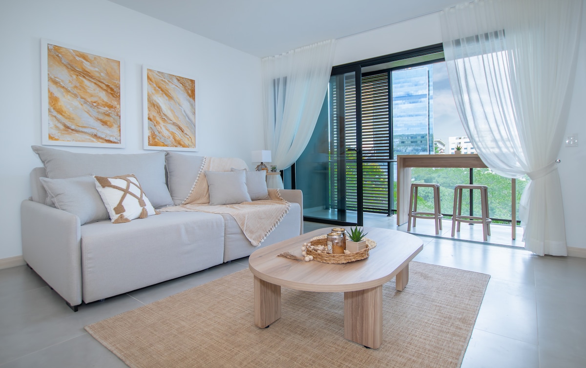 Flat in central location; short walk from Shopping del Sol and Paseo La Galeria, restaurants, WTC and shops. Unit fully equipped with a mini electric oven, coffee machine, microwave, kettle, grill, cleaning and kitchen items. Enjoy the stylish amenities such as terrace, infinity pool, grill, sauna, gym, pool table, playground and laundry. Me and my mom (my co-host) have experience managing a hotel and this flat has everything you need for a comfortable and quality stay.