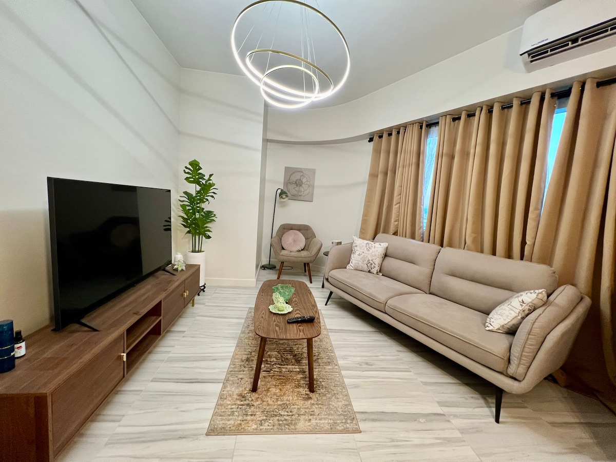 Your peaceful Pasig escape awaits. Enjoy fast Wi-Fi, a 55” smart TV, and a refreshing park setting — all in a warm, thoughtfully designed condo near Ortigas.